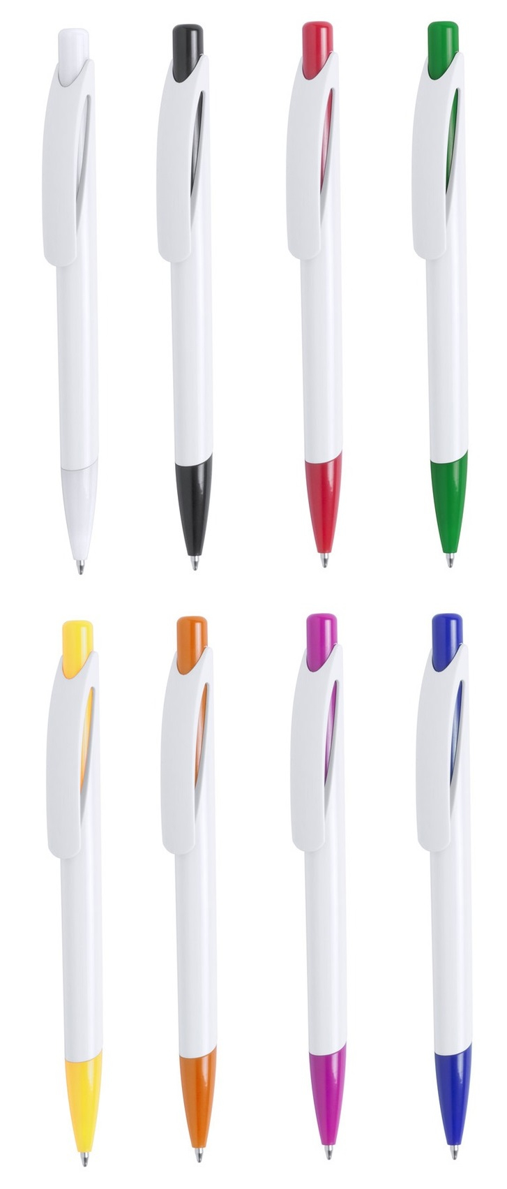 [short_description] => Twist action plastic pen with white barrel and styled clip.