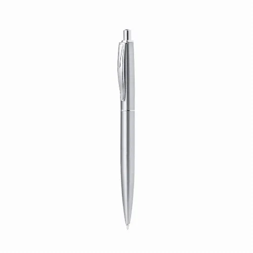 Refined ball pen in Recycled Stainless Steel with push-button mechanism.