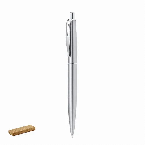 Durable Recycled Stainless Steel barrel with matte finish and metal clip. With blue ink and jumbo cartridge. Presented in an elegant cork box.Steel is one of the most demanded materials and can be found almost everywhere, from everyday products to major constructions. With countless properties, including durability and a high level of reusability, it is a much valued alternative for sustainable solutions. Properly treated, new resources of infinite use can be obtained.