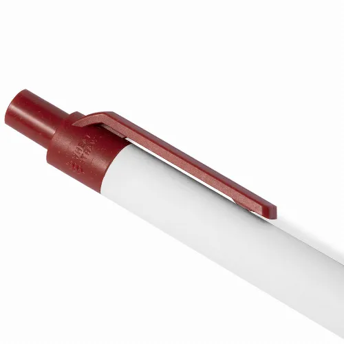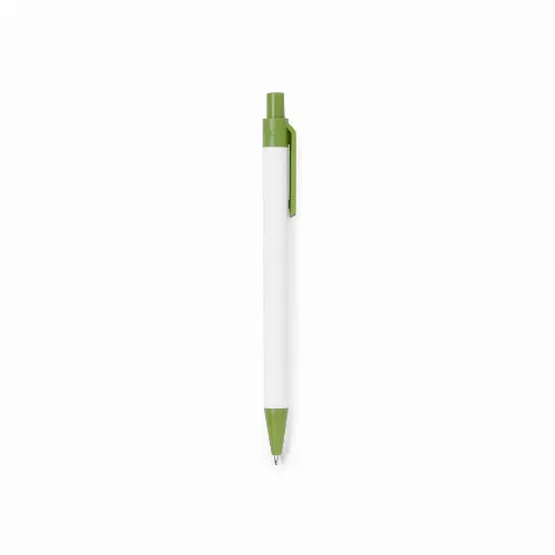 Push-button mechanism ball pen with recycled cardboard barrel.