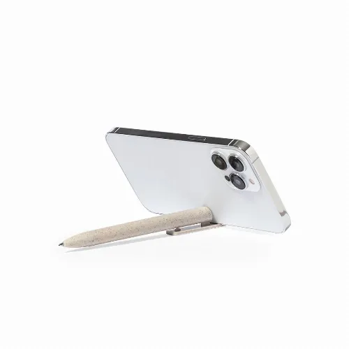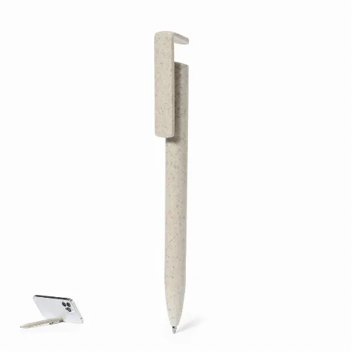 Push-button mechanism, with integrated clip holder for mobile device. In blue ink and with Wheat Straw logo on the top of the pen.Wheat straw promotes the use of natural raw materials, thus reducing pollutant emissions.