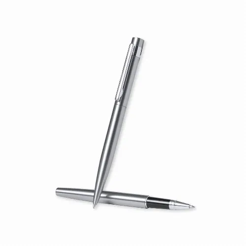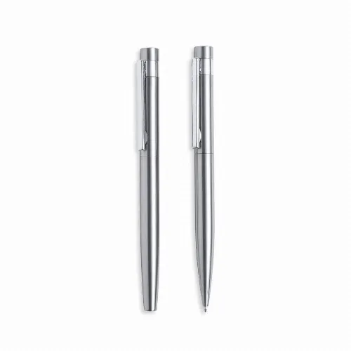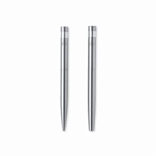 Eco-friendly set of ball pen and roller pen, made in recycled stainless steel.