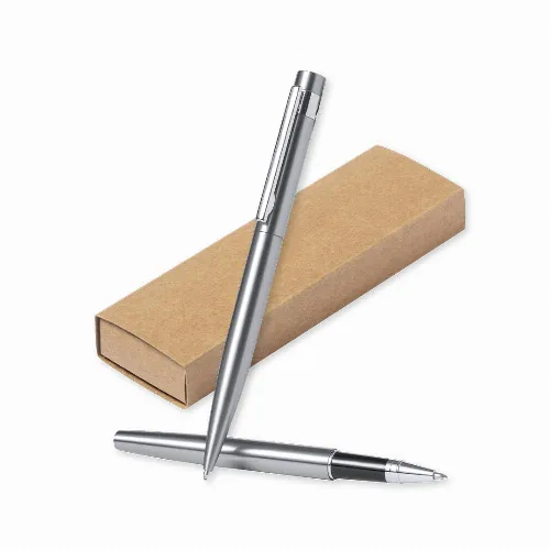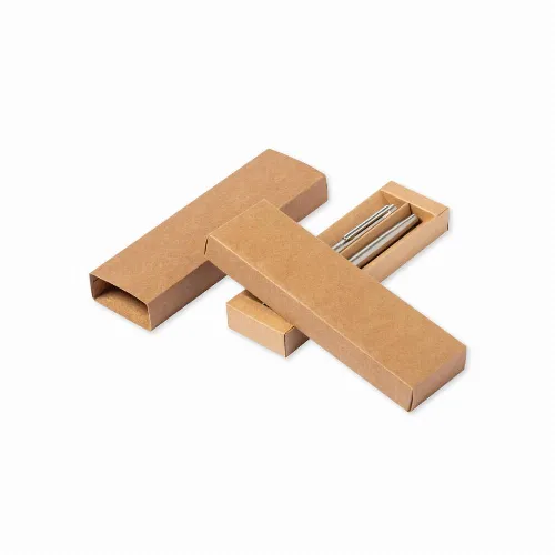 Including: Ball pen with push-button mechanism, silver finish barrel and chrome plated fittings. Metallic clip and with the distinctive of recycled stainless steel on the top of the pen. Jumbo cartridge and blue ink.Roller pen with push-button mechanism, with silver finish barrel and chrome plated fittings. Metallic clip and with the distinctive of recycled stainless steel on the hood. Jumbo cartridge and blue ink.Set presented in an individual kraft design case with matching sleeve.Steel is one of the most demanded materials and can be found almost everywhere, from everyday products to major constructions. With countless properties, including durability and a high level of reusability, it is a much valued alternative for sustainable solutions. Properly treated, new resources of infinite use can be obtained.