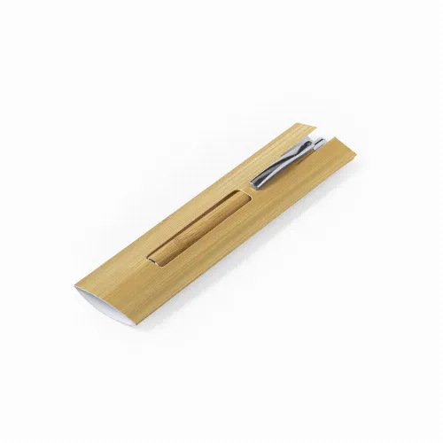 Made of cardboard, with pattern inspired in bamboo grains. Especially designed to show the logo in the clip and/or body of the ball pen (ball pen not included).