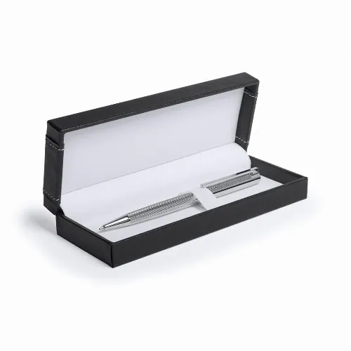 Non-slip metal body in shiny silver finish, with matching color clip. Presented in an elegant individual black PU leather case with soft white velvet inside. In German quality blue ink.