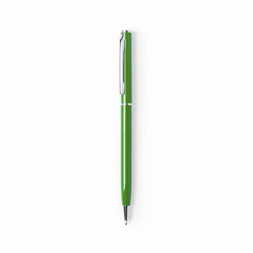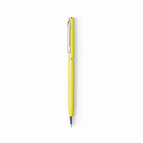 Ball pen made of aluminum, glossy finish and twist mechanism, with chrome plated accessories.