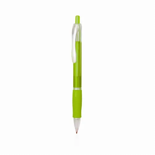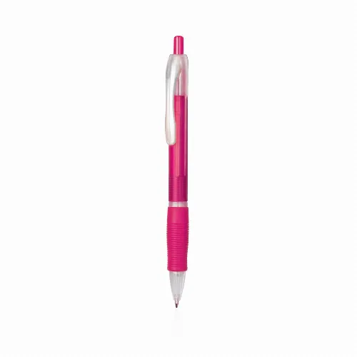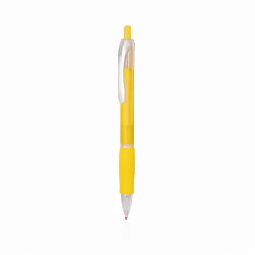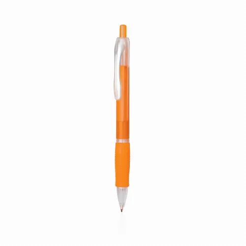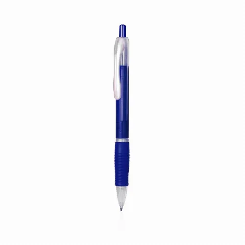 [short_description] => Frosted barrel plastic ball point pen with metallic clip and push button