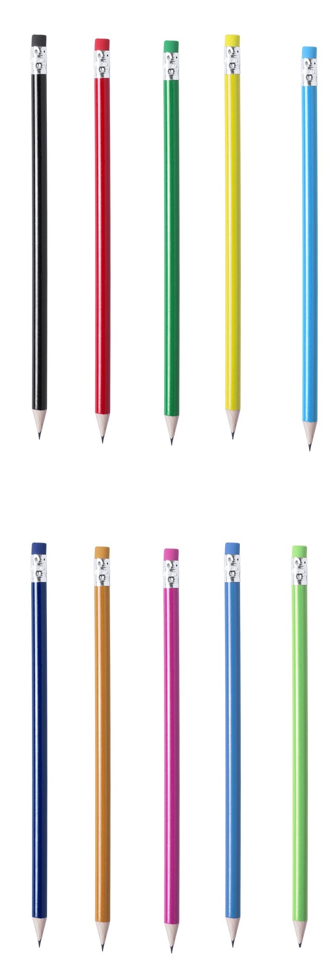 With round barrel and matching colour rubber. Available in a wide range of colours. Black color lead and sharpened tip.