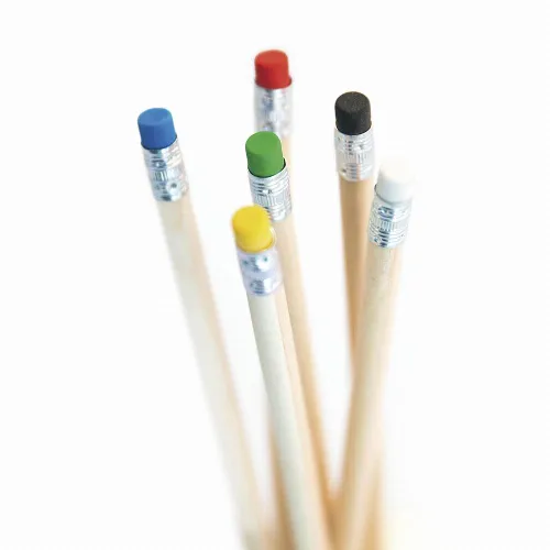 With round barrel and rubber -rubber available in a wide range of colours-. Unsharpened tip.