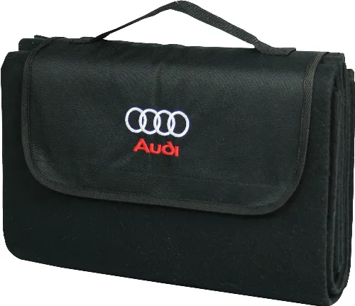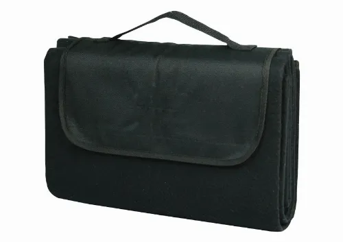 Monochrome fleece picnic rug with waterproof PEVA backing and Nylon front flap for branding with velcro closure.