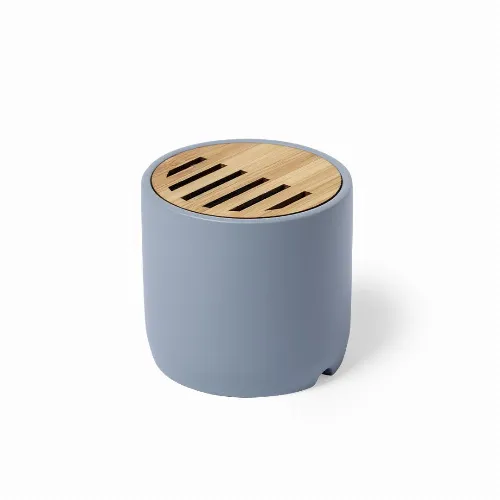 Bluetooth speaker in combination of natural cut bamboo pieces and limestone cement, a conglomerate formed by the combination of natural materials, mainly ground limestone and water, obtaining a material of great consistency and durability.