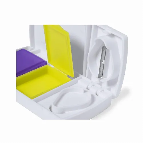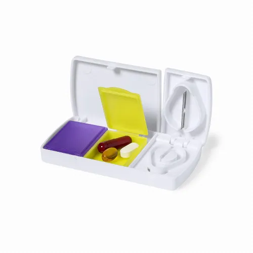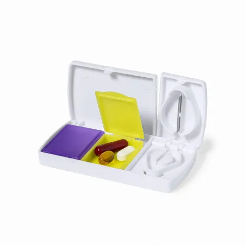 With 2 inside boxes, safety lock and blade to split pills.
