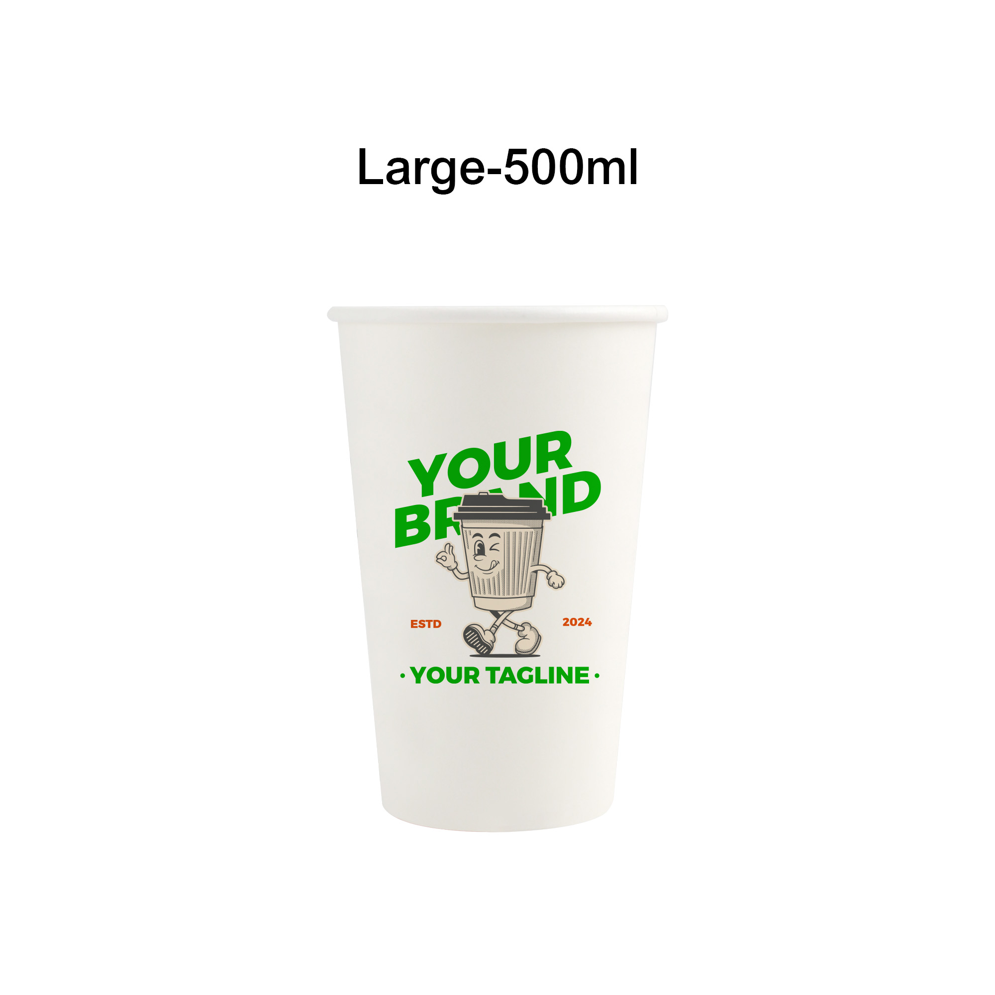 Get your branding seen with our new PLA Single Wall Compostable Paper Cups! Made from 100% virgin pulp paper and industrial compostable PLA coating, breaking down completely in professional composting facilities. They can be used for hot or cold drinks without leaving harmful waste. Customised with CMYK print to highlight your branding. In addition, enhance your brand experience by pairing your paper cups with white compostable sugarcane lids. Custom Shape Printed Cup Sleeves are also available. Perfect as promotional gifts for cafes, corporate events, promotions, or as branded giveaways.