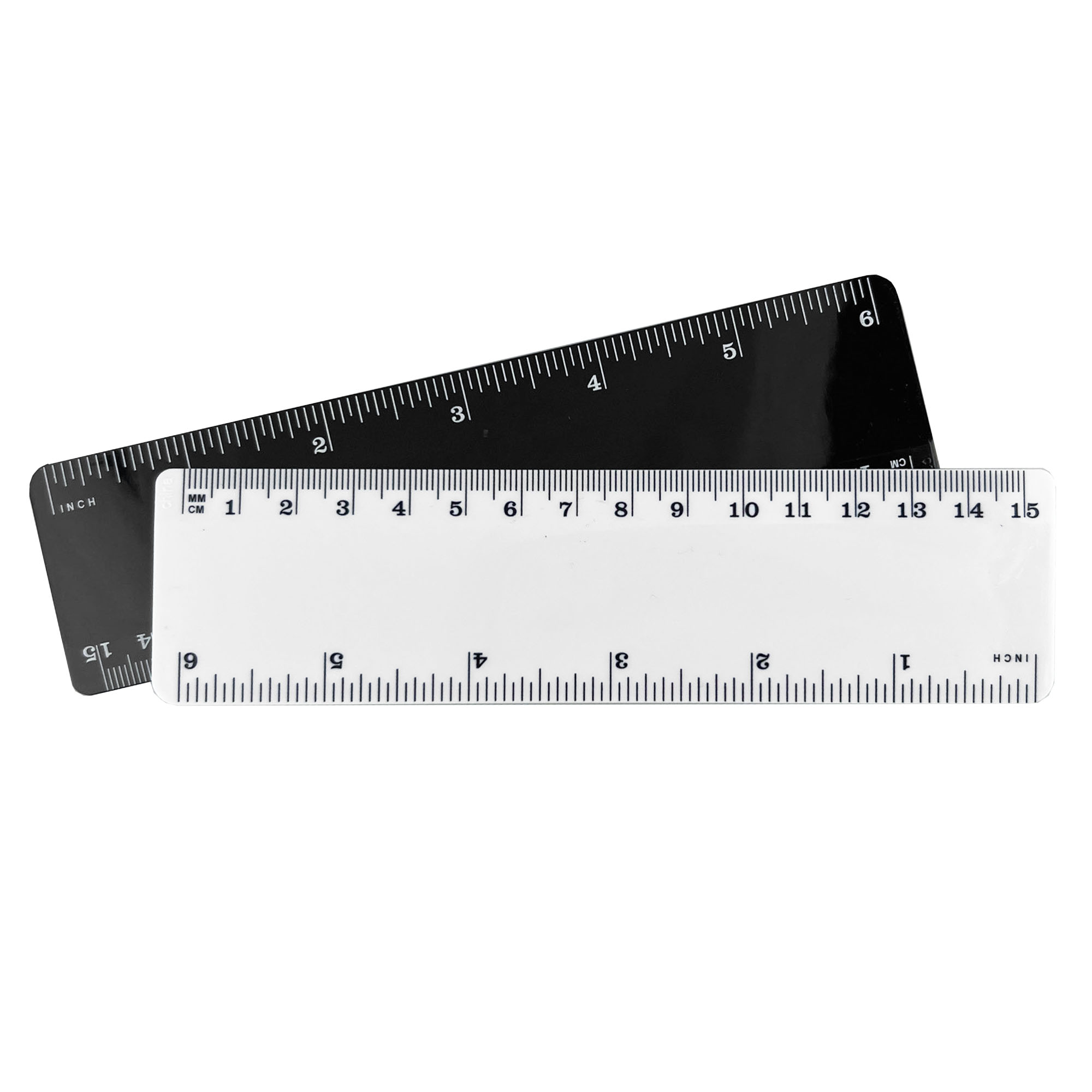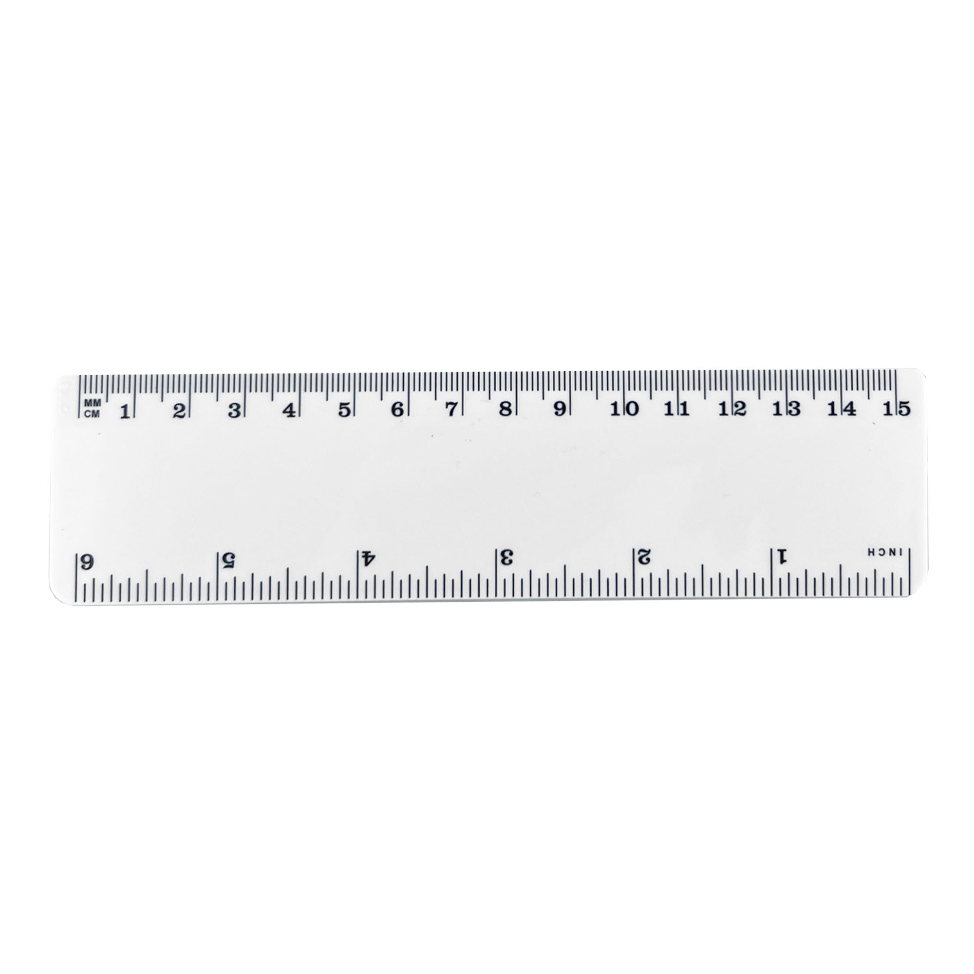 Solid 15cm plastic ruler with one side graduation in centimetres. (Note small China mark on edge of ruler)