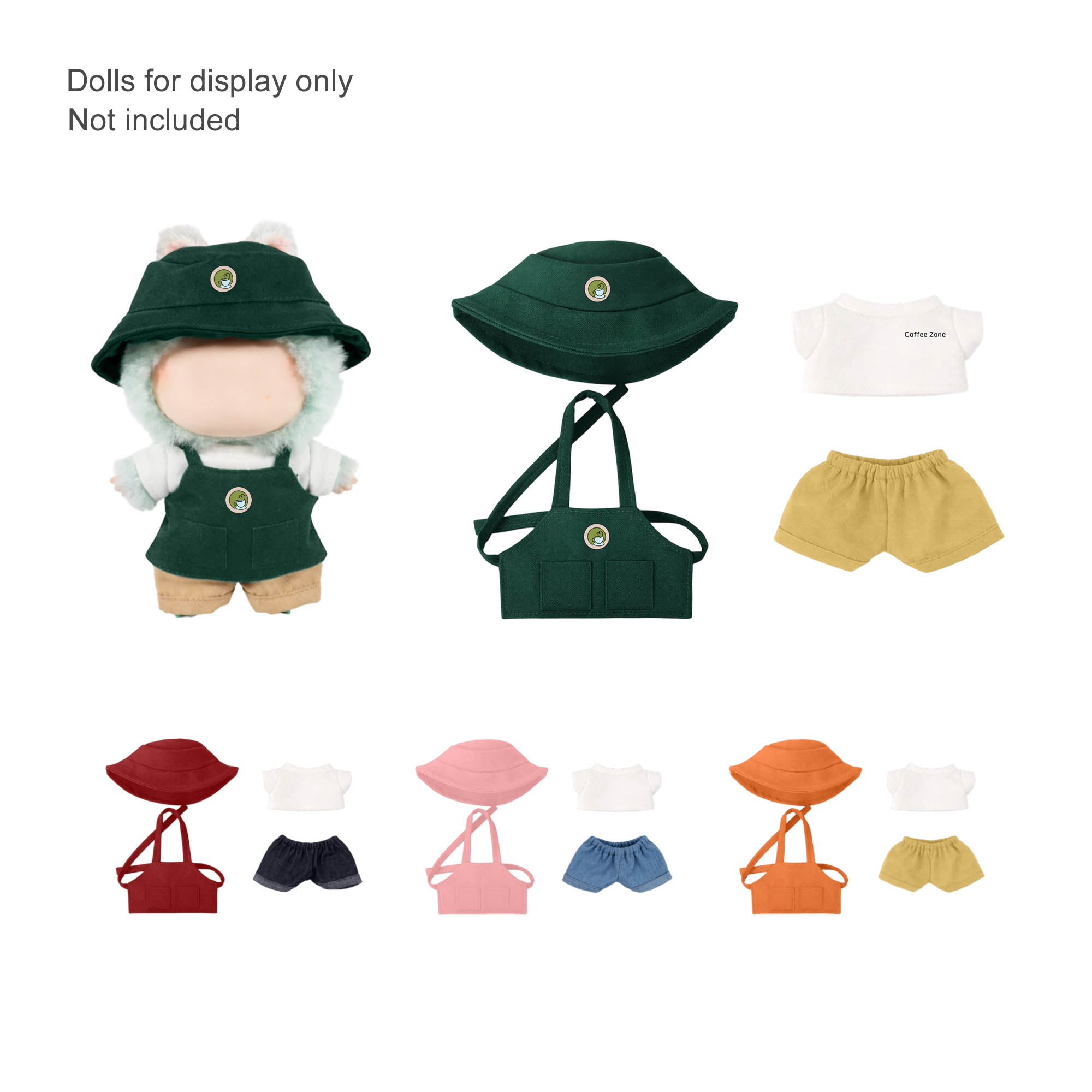 Elevate your collectibles with our Plush Doll Cafe 4-Piece Apron Outfit! Specifically designed to fit 17cm plush vinyl dolls, this premium set includes a hat, shirt, trousers, and a functional apron. Crafted from polyester material with heat transfer full colour print to showcase your custom logos and designs. This cafe-themed outfit adds a trendy, high-value element to any doll collection. Ideal for IP-compatible merchandise and retail displays.