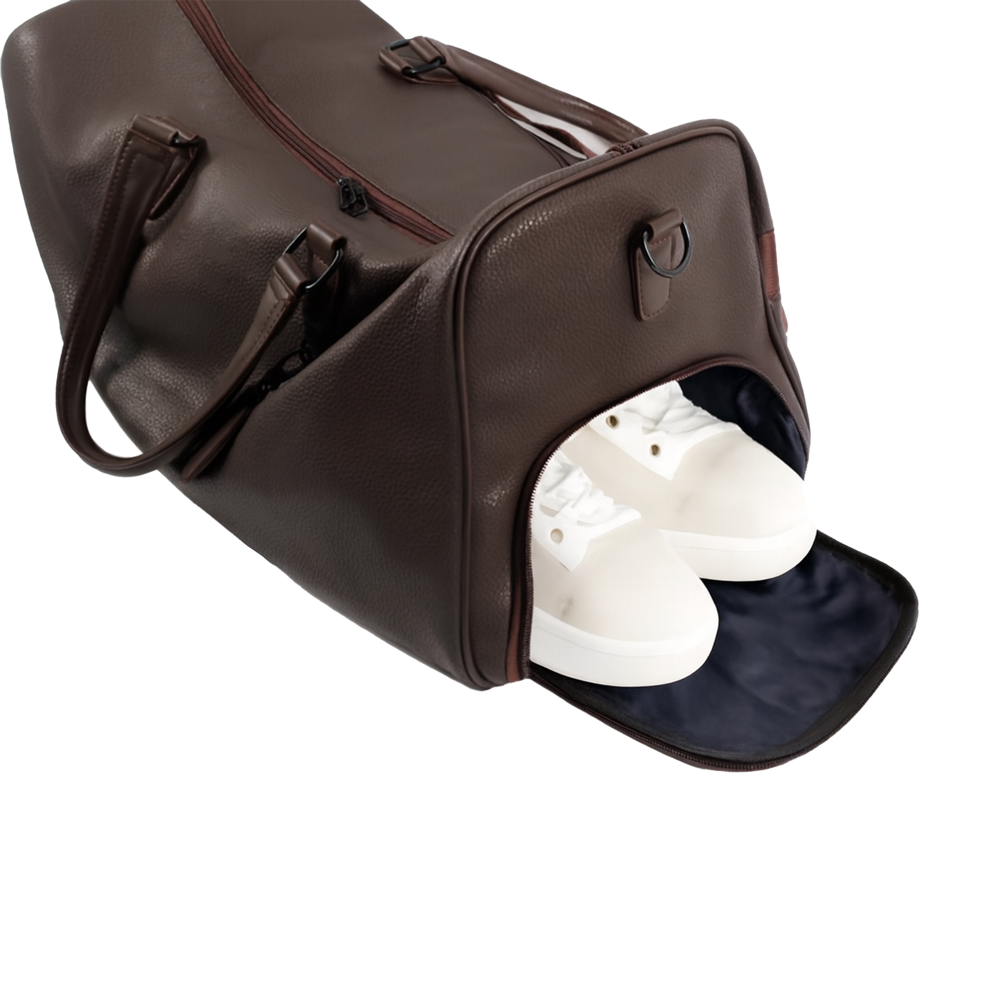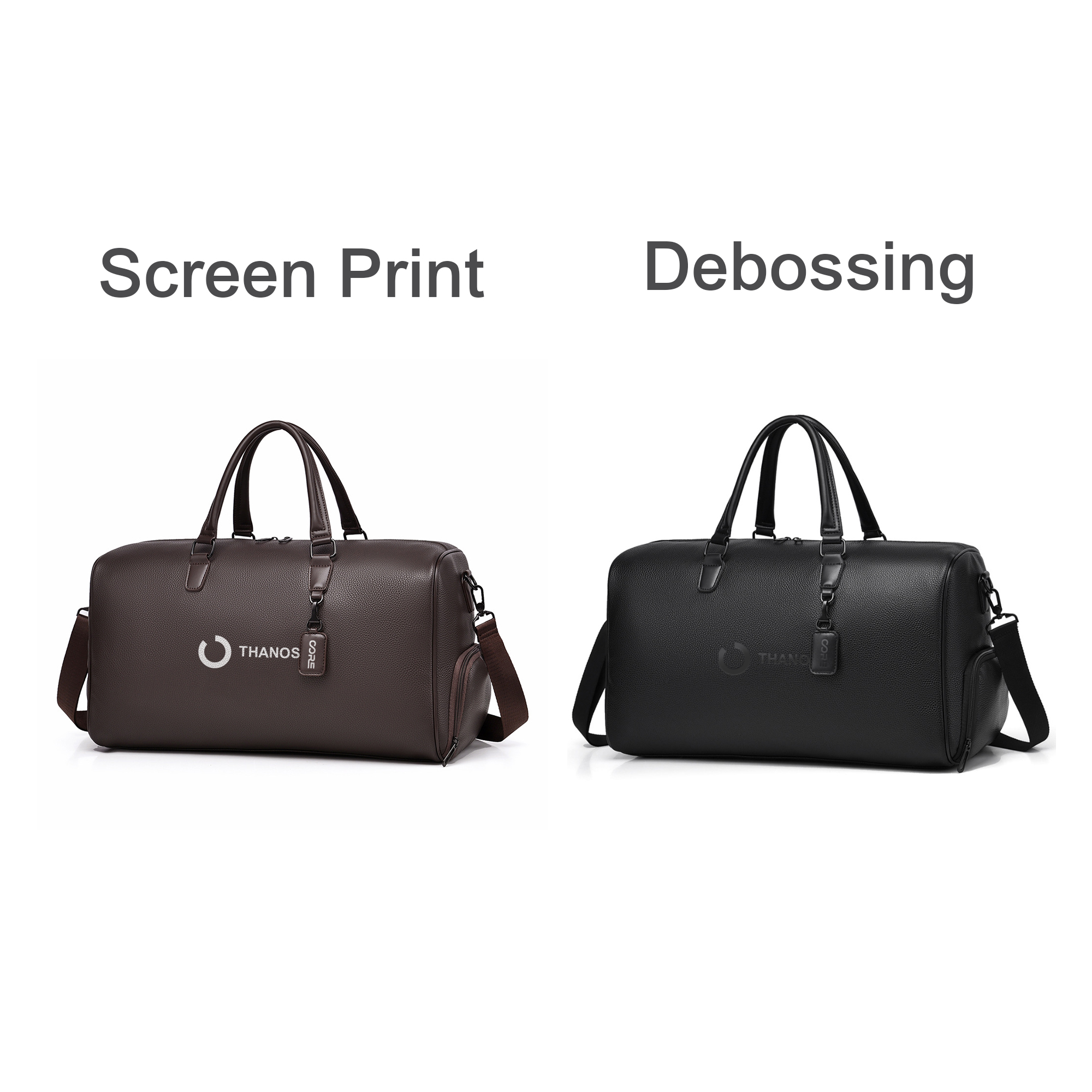 This Polyurethane Duffle Bag can be conveniently folded up when not in use. Featuring a zipper pocket for essentials, a side zipper pocket for shoes and a belt on the back for suitcase fastening. Our quality duffle bag is made of polyurethane, that is water resistant and durable. With screen print or debossing to showcase your design, you can choose from 2 colours, black and brown.