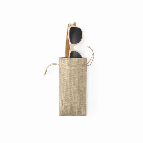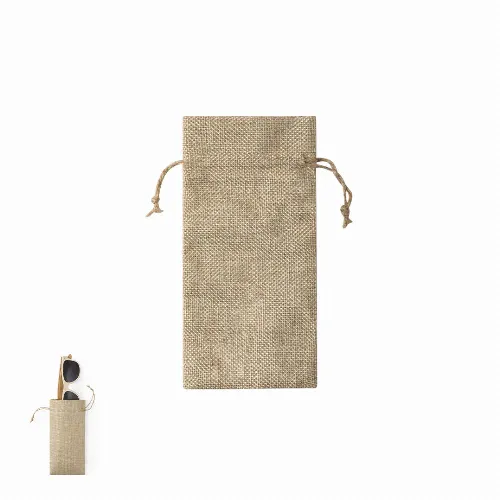 Polyester pouch in raw finishing, with adjustable strings and soft inside..