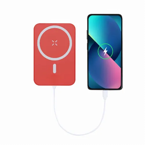 External auxiliary battery with charging capacity -5.000 mAh- with integrated 5W wireless charger and Magsafe magnetic attachment, which allows using the device while charging.