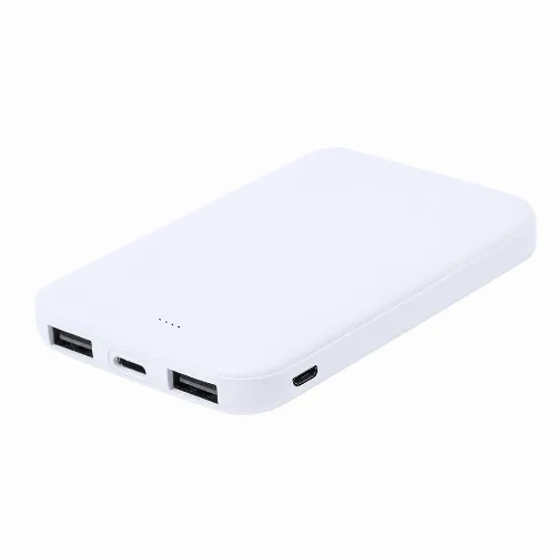 Includes dual USB output for simultaneous charging of 2 devices, Micro USB input -cable included-, and Type C input and output connection. With charge status indicator and presented in an attractive eco-designed box. With large branding area and instructions manualavailable in English and Spanish.RABS is a highly recyclable and highly resistant plastic with a multitude of applications that make of it an eco-friendly solution. With RCS certification, guaranteeing its recycled origin.The capacities shown in all our external auxiliary batteries are real, all of them incorporating non-recycled, grade A batteries, with a service life of at least 500 charging cycles, and complying with CE regulations. In addition, they are manufactured according RoHS standards, and in compliance with the following safety requirements: Power bank overcharge protection system. Complete discharge protection system, which increases the durability of the power bank. Blocking system to prevent short circuits. Constant charging transfer system, in accordance with the capacity of the target device.