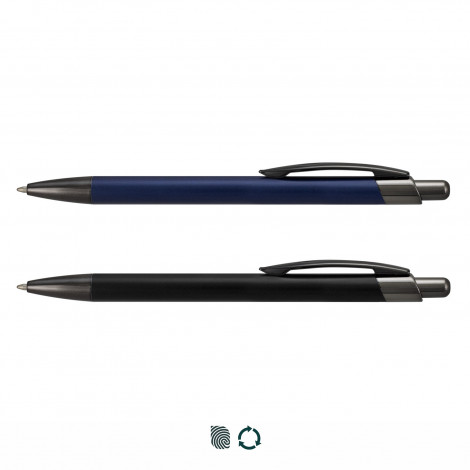 Retractable recycled aluminium ball pen with a gloss lacquered barrel and shiny gunmetal accents. It has 800m of blue German manufactured Dokumental ink and can be presented in an optional pen sleeve.