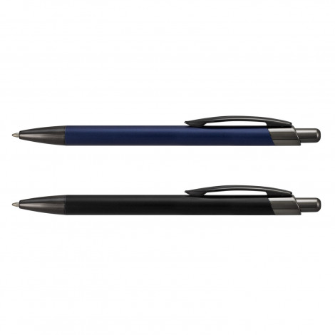 [description] => Retractable aluminium ballpoint pen with a debossed pattern on the grip, a matte lacquered barrel and shiny chrome accents. It has a blue large volume refill with 800 metres of writing ink and can be presented in an optional black pen sleeve.