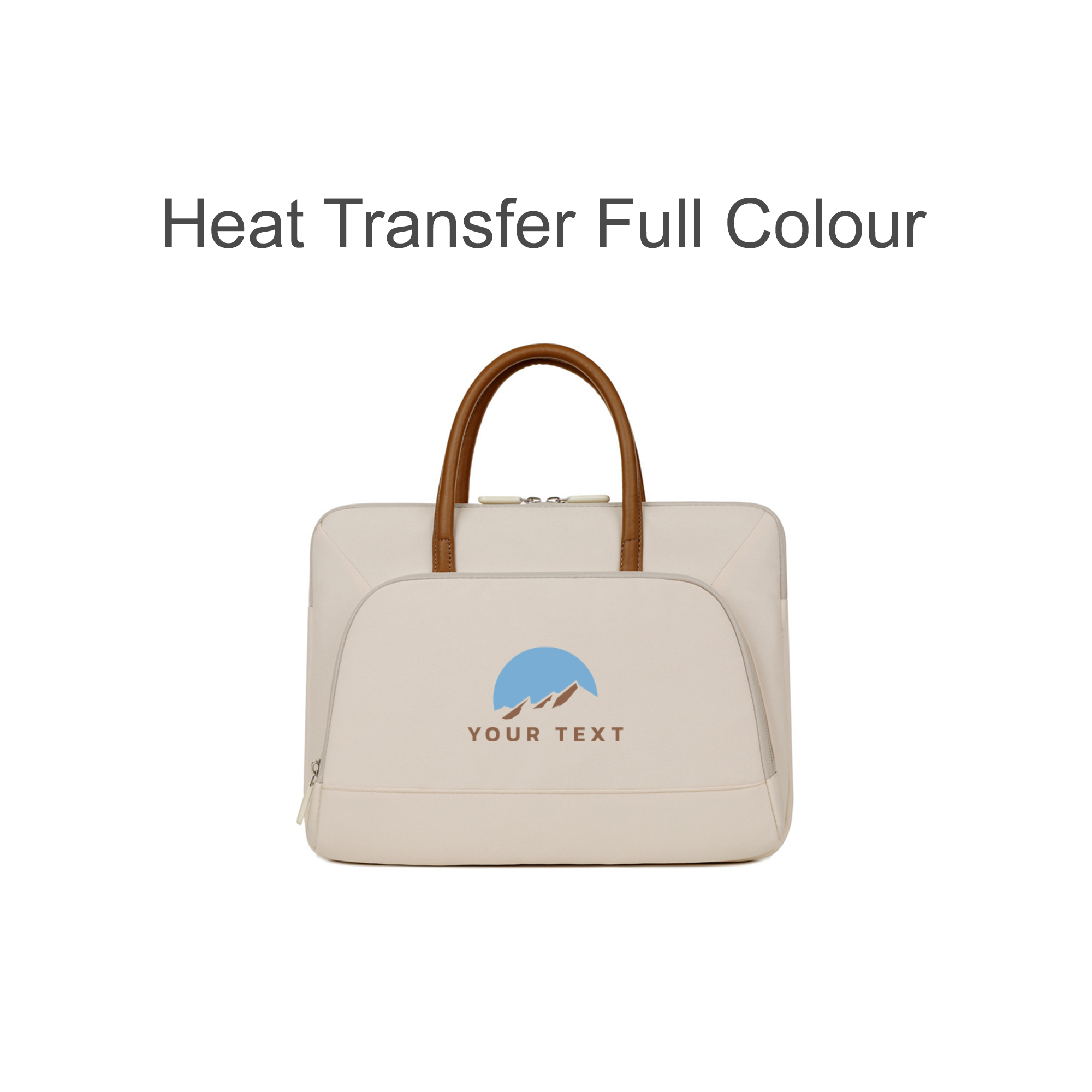 This PU Handle Laptop Bag with Zippered Outer Pocket is the perfect business companion, available in 2 sizes to fit 14 or 16 inch laptops. It features 2 zippered compartments and a rear luggage strap for suitcase attachment. The main laptop compartment of this bag is equipped with shock-absorbing foam pads and lined with soft short fleece. Our quality laptop bag is made of Oxford material, which is water-resistant and durable. With heat transfer full colour to showcase your design, you can choose from 5 colours.