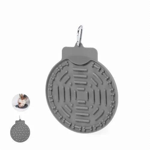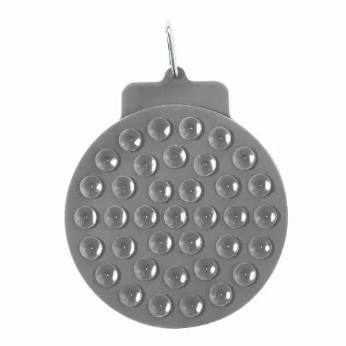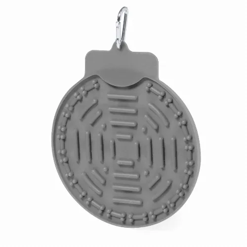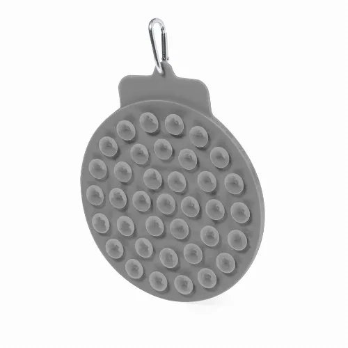 With powerful suction cups to attach to flat surfaces so pets can lick the rough texture. Built-in carabiner for easy attachment. Presented in an individual recycled bag.
