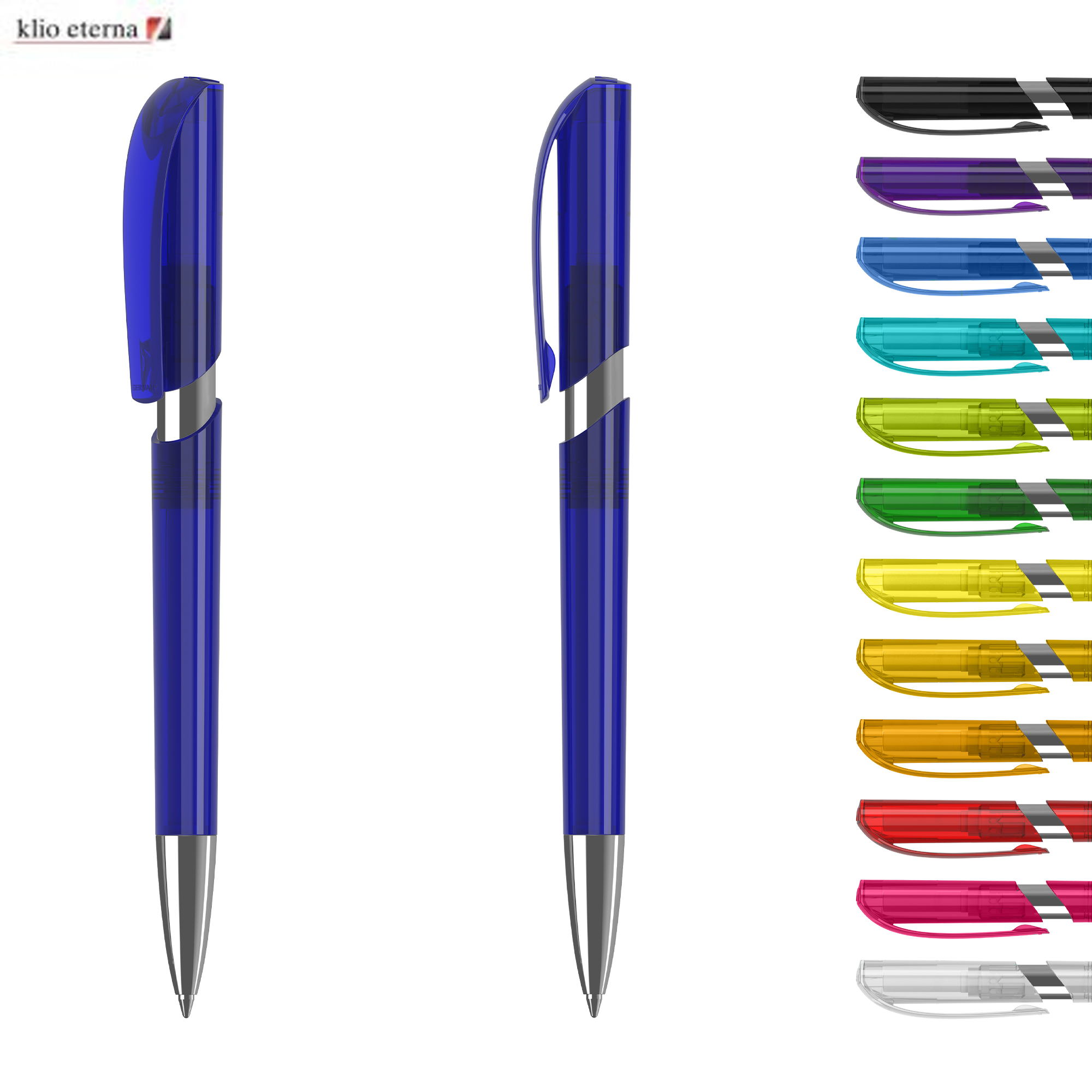 Klio the iconic European brand since 1900 now available worldwide. (Klio Model: 42303) Modern pen that stands out with its sleek design and beautifully shaped clip top. Featuring a click-action mechanism and crafted from transparent high-gloss plastic (ABS) with a brass nickel-plated tip it exudes sophistication. Paired with a high-quality SilkTech German-made black ink refill meeting ISO 12757-2 standards it ensures reliability with a shelf life of 3 years. With an impressive writing distance of 3000 meters double that of standard pens and equipped with a tungsten carbide ball for precision it guarantees an exceptional writing experience. Designed and manufactured in Germany it’s exclusively available through the Dex Collection in Australia and New Zealand with a minimum order of 500 units per colour. Custom colours available for orders of 5000 or more.