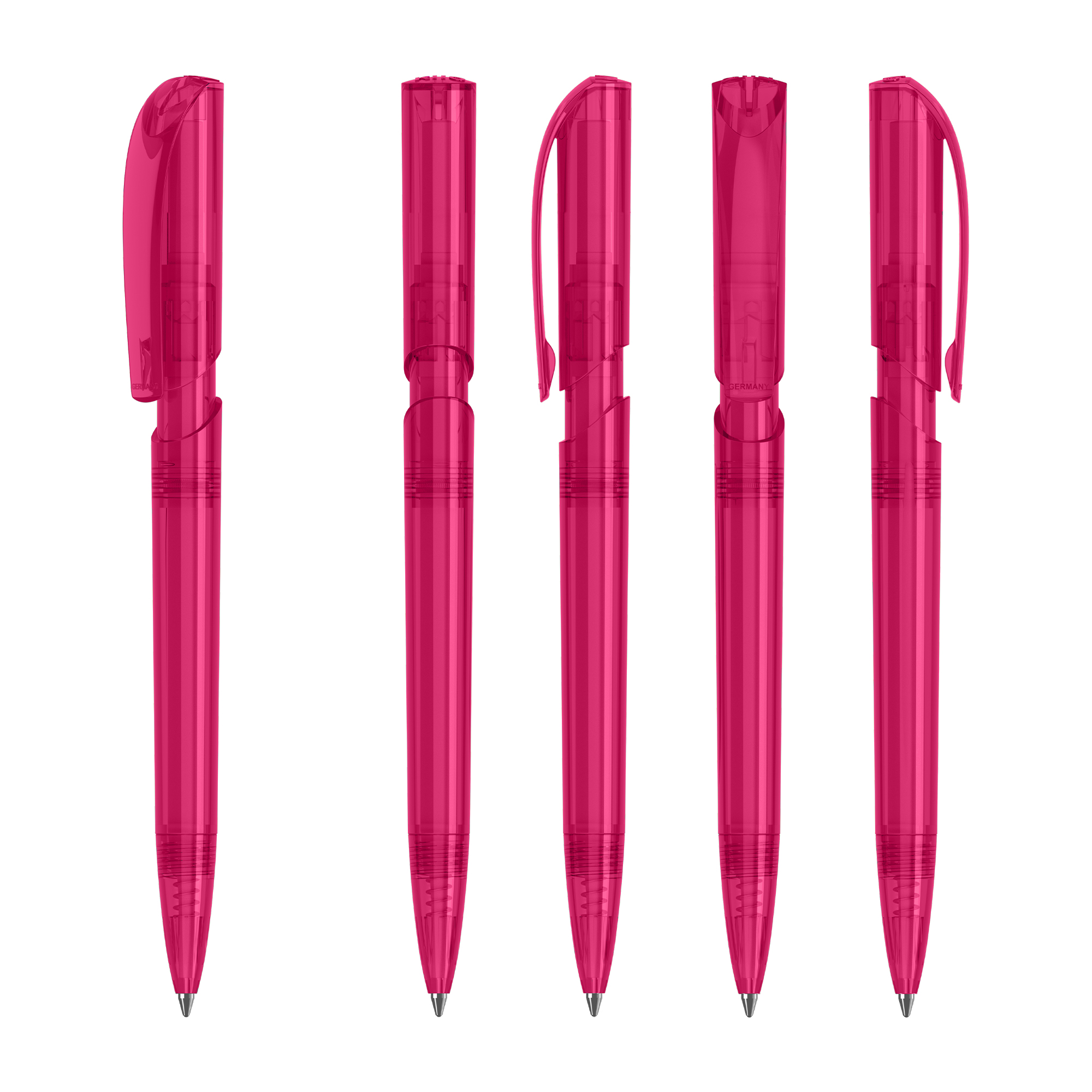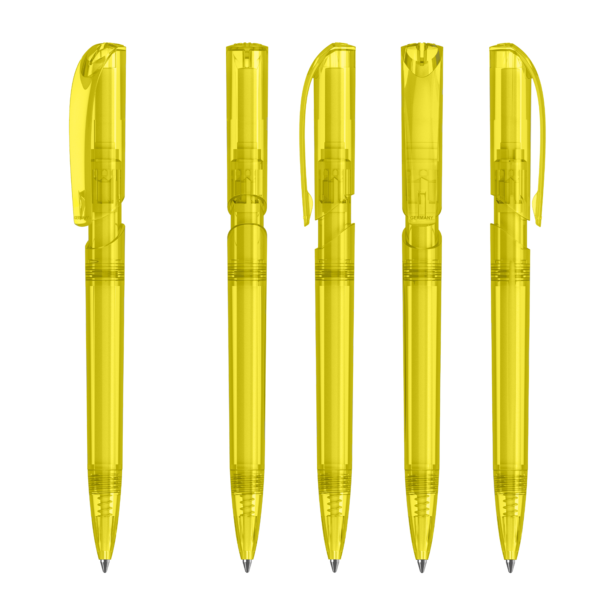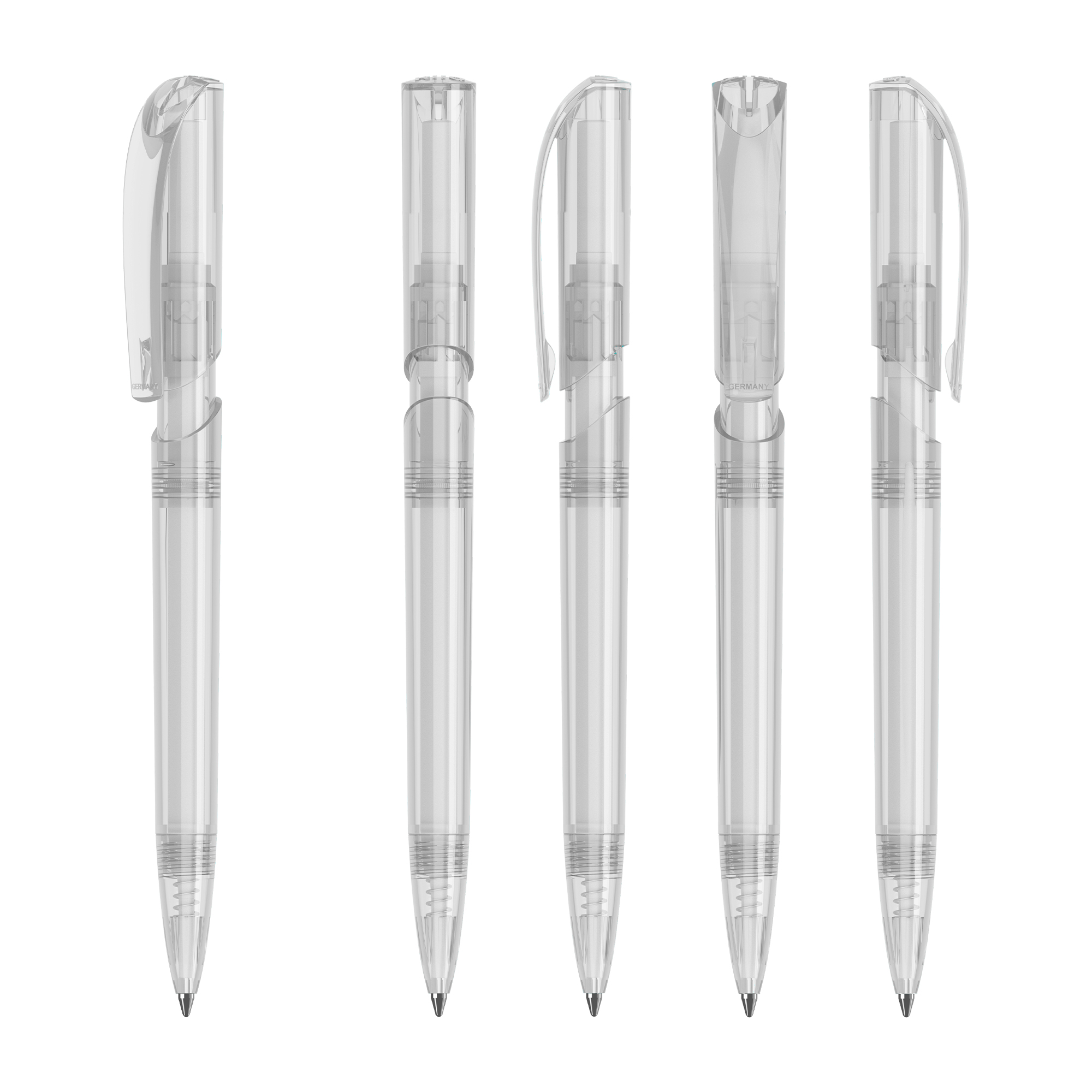 Klio the iconic European brand since 1900 now available worldwide. (Klio Model: 42301) Modern pen that captivates with its sleek design and beautifully shaped clip top. With a click-action mechanism and crafted from transparent high-gloss plastic (ABS) it offers a contemporary aesthetic. Paired with a high-quality SilkTech German-made black ink refill meeting ISO 12757-2 standards it ensures reliability with a shelf life of 3 years. Boasting an impressive writing distance of 3000 meters double that of standard pens and equipped with a tungsten carbide ball for precision it guarantees an exceptional writing experience. Designed and manufactured in Germany it’s exclusively available through the Dex Collection in Australia and New Zealand with a minimum order of 500 units per colour. Custom colours available for orders of 5000 or more.