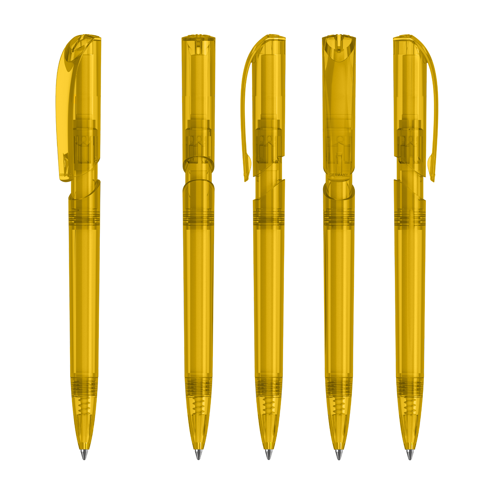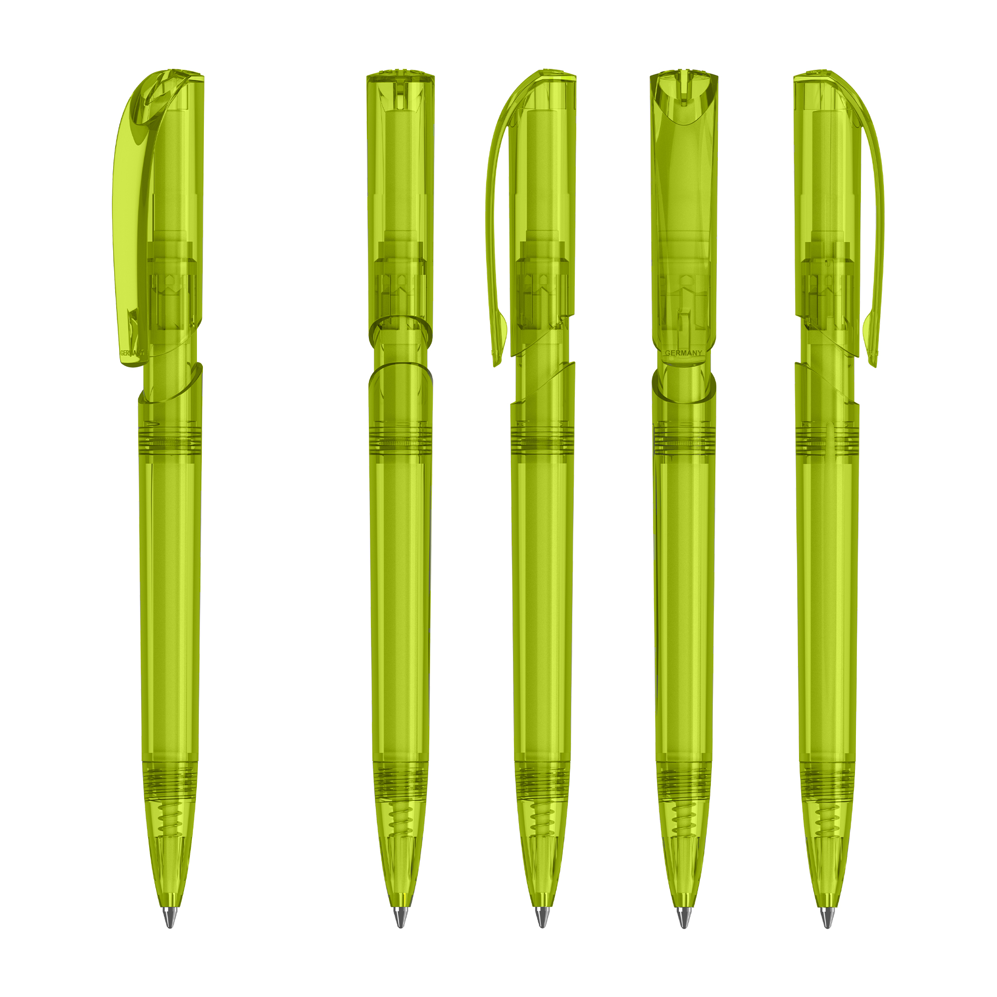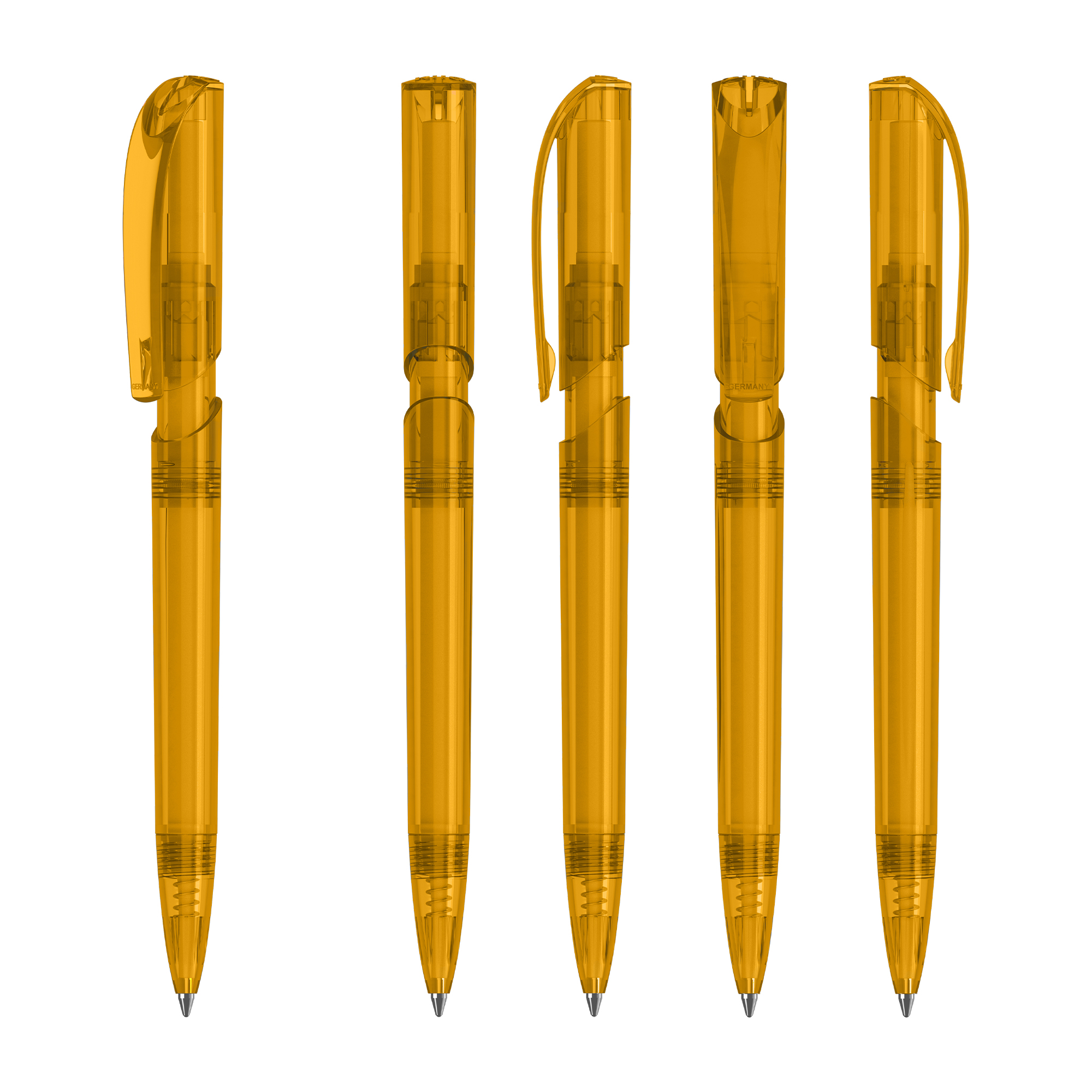 Klio the iconic European brand since 1900 now available worldwide. (Klio Model: 42301) Modern pen that captivates with its sleek design and beautifully shaped clip top. With a click-action mechanism and crafted from transparent high-gloss plastic (ABS) it offers a contemporary aesthetic. Paired with a high-quality SilkTech German-made black ink refill meeting ISO 12757-2 standards it ensures reliability with a shelf life of 3 years. Boasting an impressive writing distance of 3000 meters double that of standard pens and equipped with a tungsten carbide ball for precision it guarantees an exceptional writing experience. Designed and manufactured in Germany it’s exclusively available through the Dex Collection in Australia and New Zealand with a minimum order of 500 units per colour. Custom colours available for orders of 5000 or more.