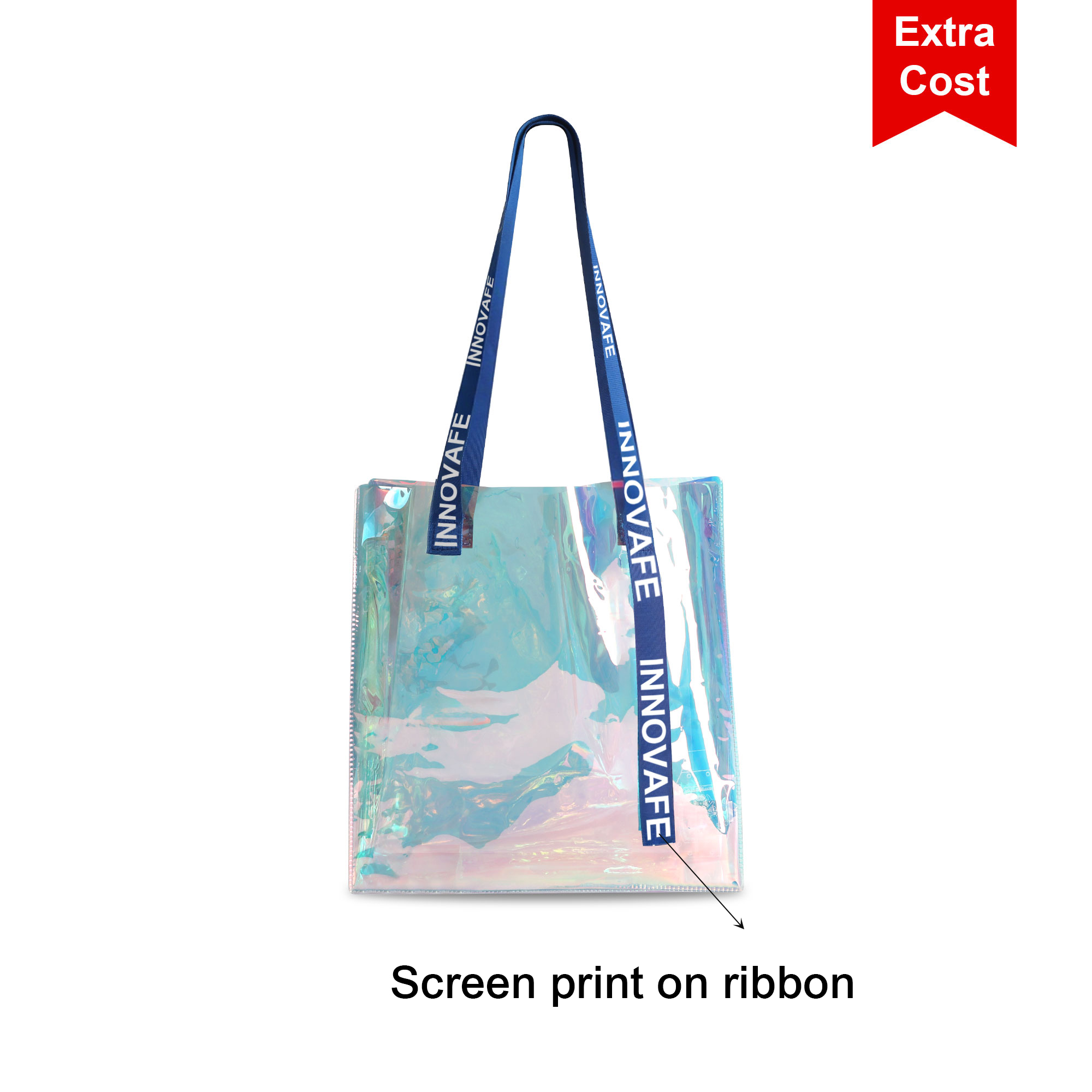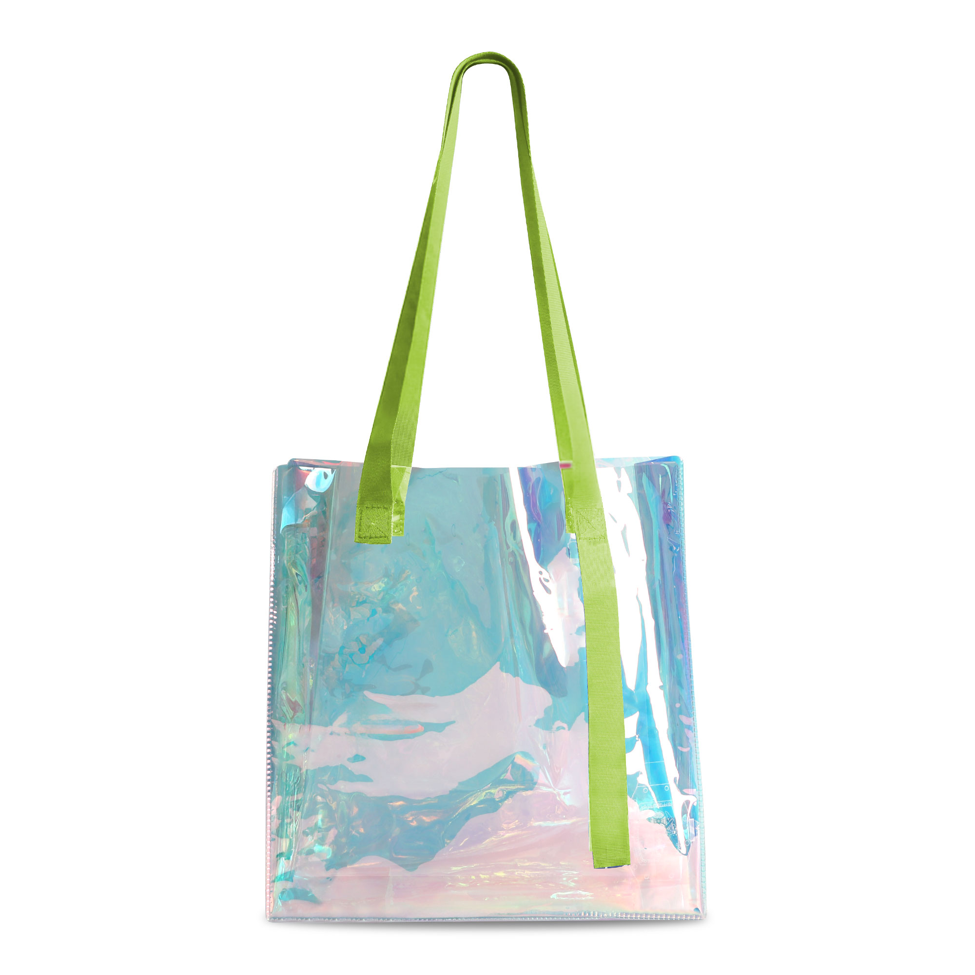 Our PVC Waterproof Tote Bag with holographic design showcases a variety of colors! Made from 0.3mm thickened transparent PVC material, which is waterproof and durable. The braided handle makes the bag more sturdy. With screen print to highlight your brand. It’s ideal for shopping, events, the beach or as a stylish everyday bag.