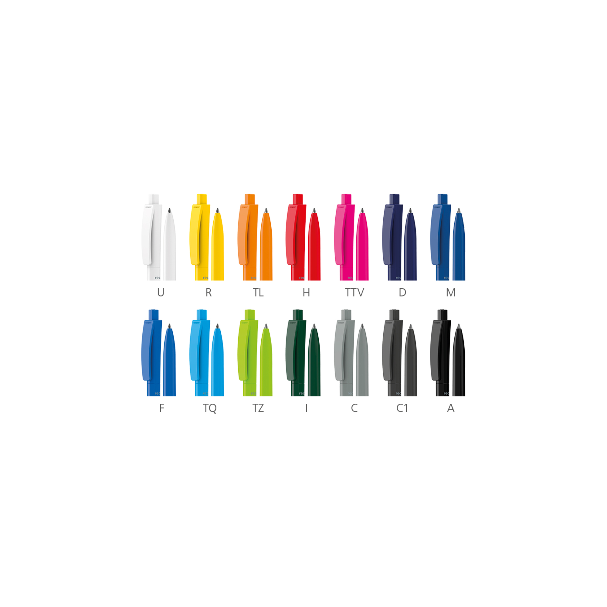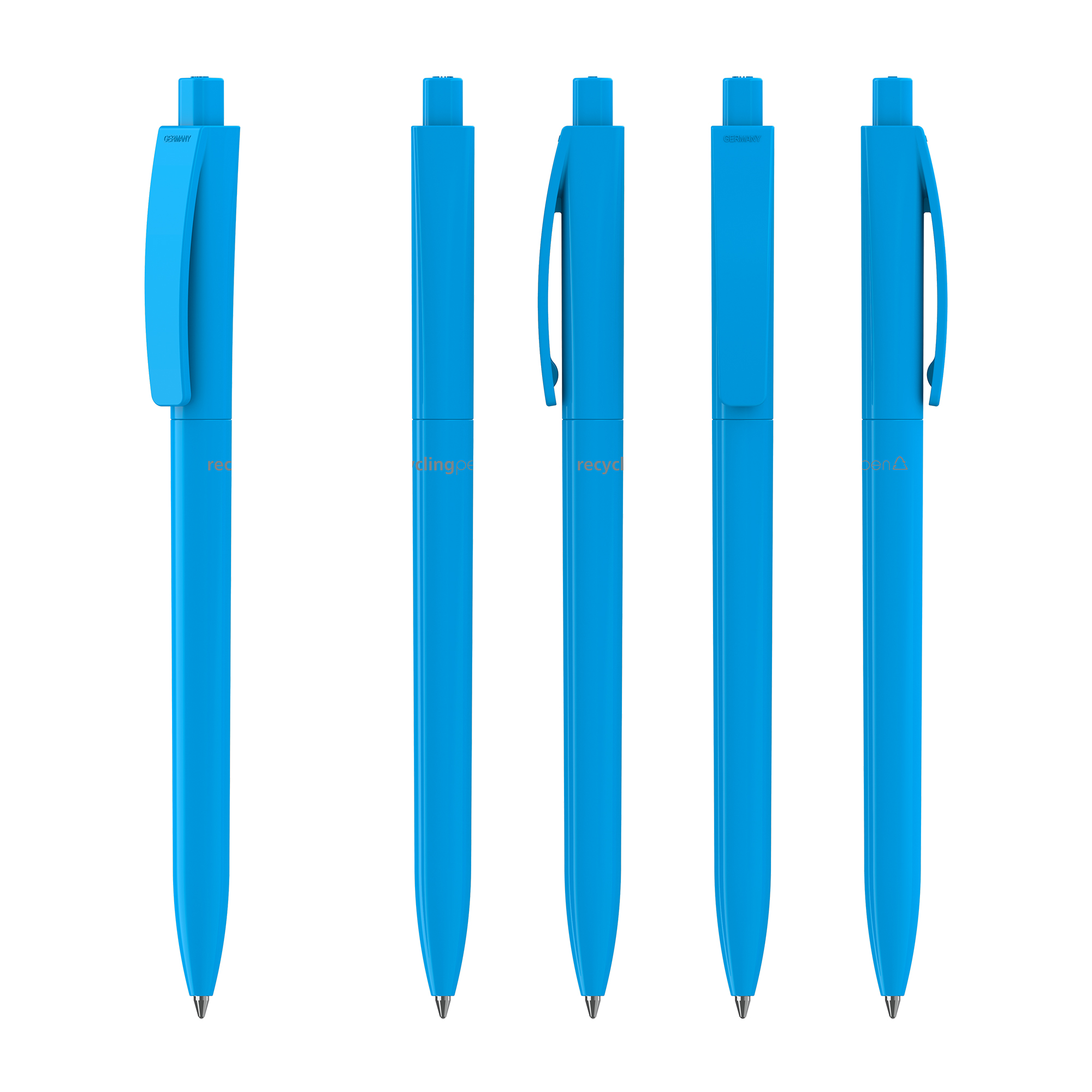 Klio the iconic European brand since 1900 now available worldwide. (Klio Model: 42204) Characterized by its modern design and the interplay of basic geometric shapes. Featuring a click-action mechanism and crafted from solid high gloss recycled plastic (rABS) it’s both stylish and sustainable. Paired with a high-quality SilkTech German-made black ink refill meeting ISO 12757-2 standards it ensures reliability with a shelf life of 3 years. With an impressive writing distance of 3000 meters double that of standard pens and equipped with a tungsten carbide ball for precision it guarantees an exceptional writing experience. Designed and manufactured in Germany exclusively available through the Dex Collection in Australia and New Zealand. Minimum order of 500 units per colour. Custom colours available for orders of 5000 or more.