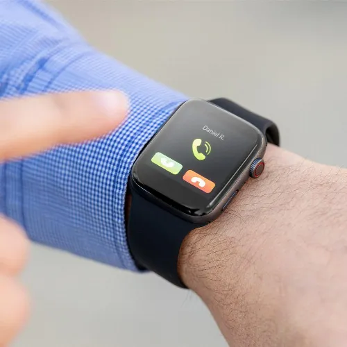 Multifunction smart watch with casual design, Bluetooth connection and rechargeable via wireless connection.