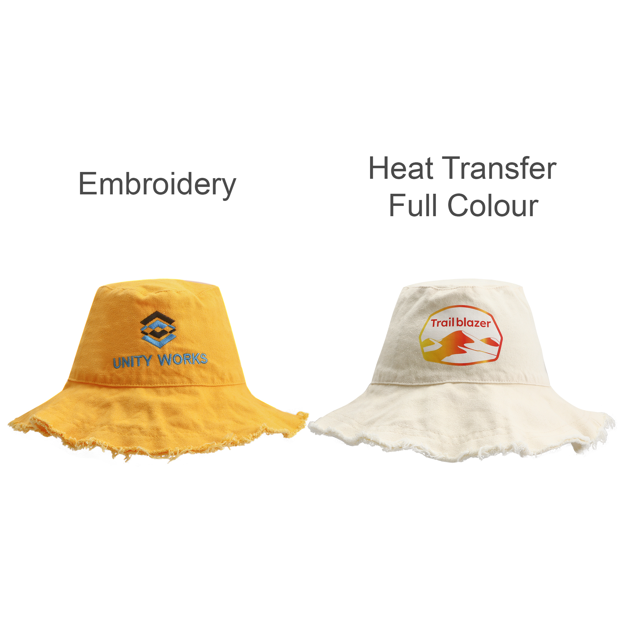 Introducing the Raw Edge Bucket Hat – a perfect blend of comfort and style, crafted from 100% pure cotton. This versatile hat offers not only sun protection but also warmth and a trendy look. Customise with your own unique heat transfer printing, screen printing or embroidery to make it truly yours. Choose from 9 vibrant colors and complete your outfit with this must-have accessory, whether you’re out in the sun or simply adding flair to your ensemble.