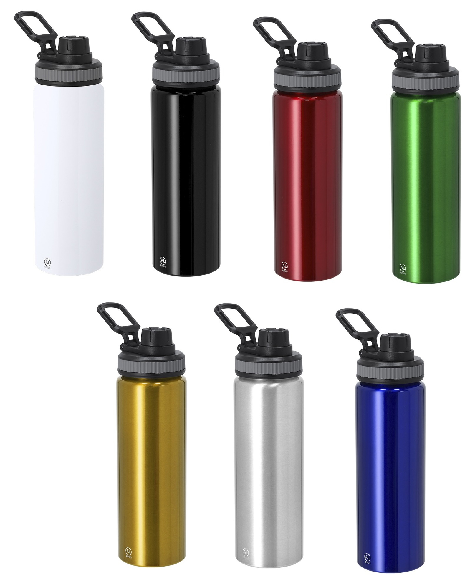 Supplied with black screw-on lid with grey silicone grip for optimum sealing, dispenser and adjustable carrying handle. With Recycled Aluminium logo.Recycled aluminium is a material with almost infinite recycling possibilities, without losing its original properties and consuming less energy in the process.GRS (Global Recycled Standard) certification, guaranteeing the recycled origin of the material used to manufacture the product.
