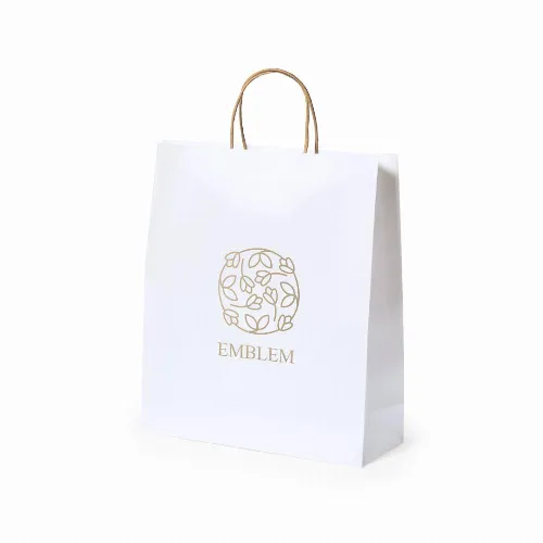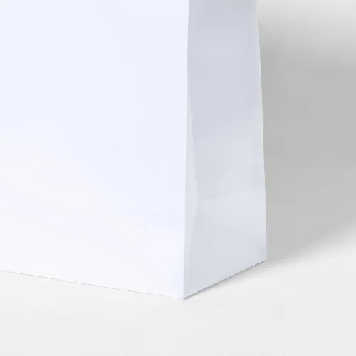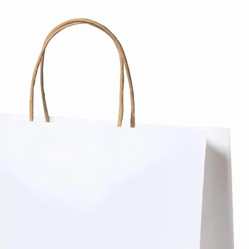 Nature line bag, made of 100g/m2 recycled paper in white finish, with short reinforced handles in natural colour and gusset.