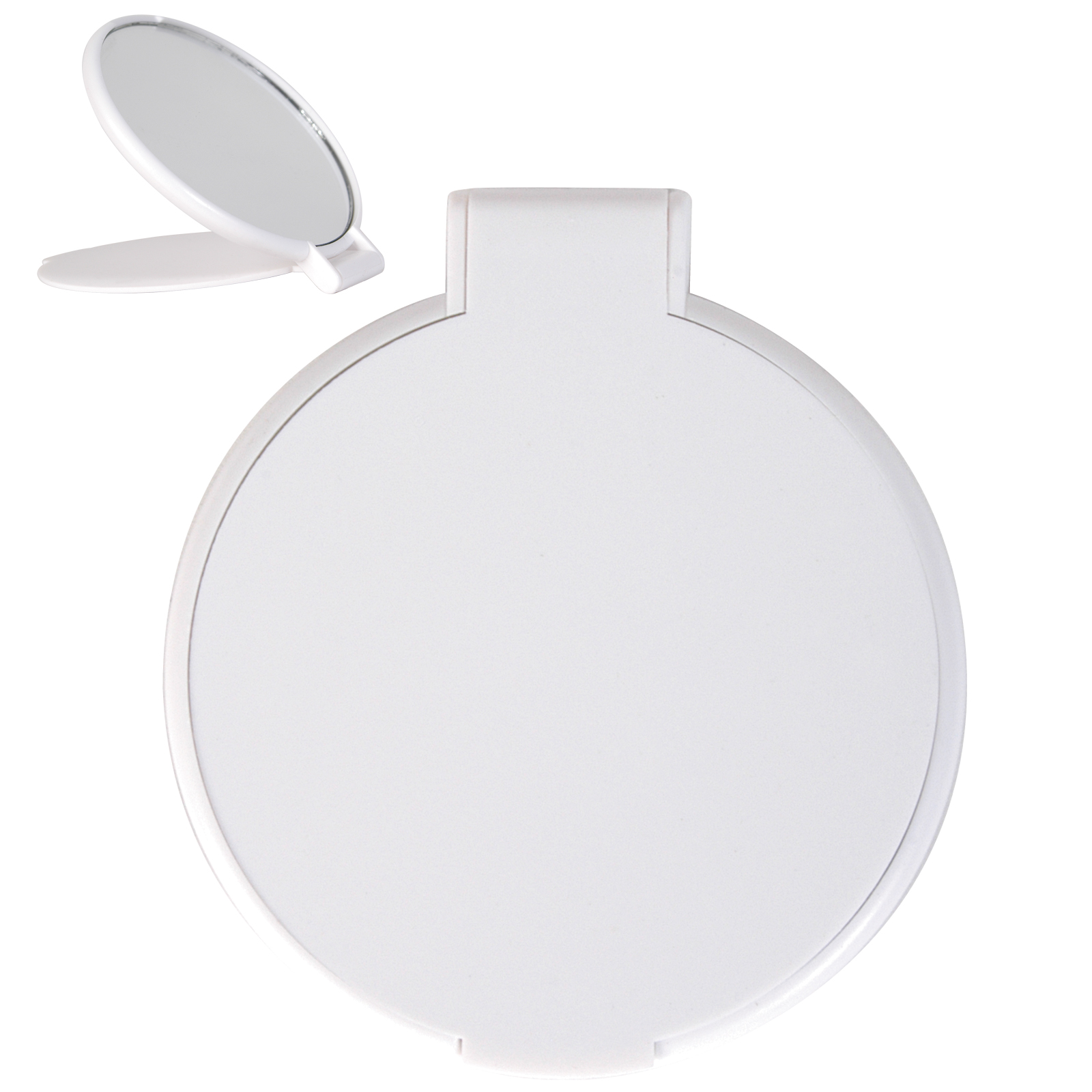 Compact mirror with flip lid that converts to a stand. Handy travel size. Perfect to slip into your pocket or handbag.
