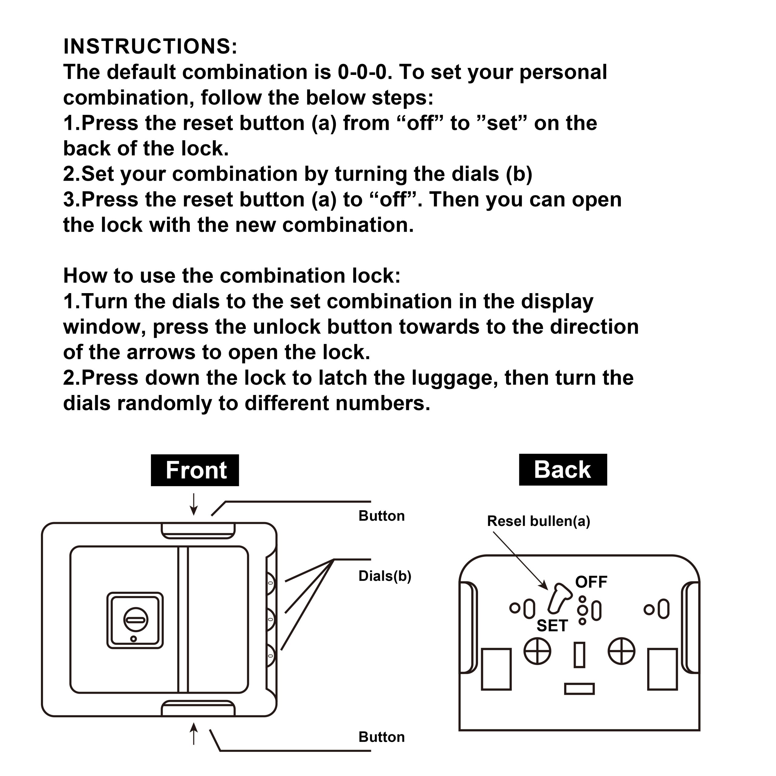 - Equipped with two ordinary combination locks, upper and lower, protecting your luggage well