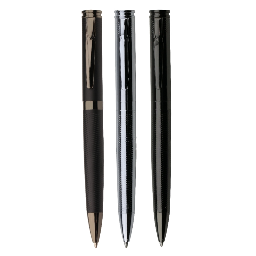 Brass pen with shiny chrome or colour match part. Black ink, 1.0mm tip, Documental ink, TC NIB 1.0mm. 1800m writing length, metal Parker style refill.