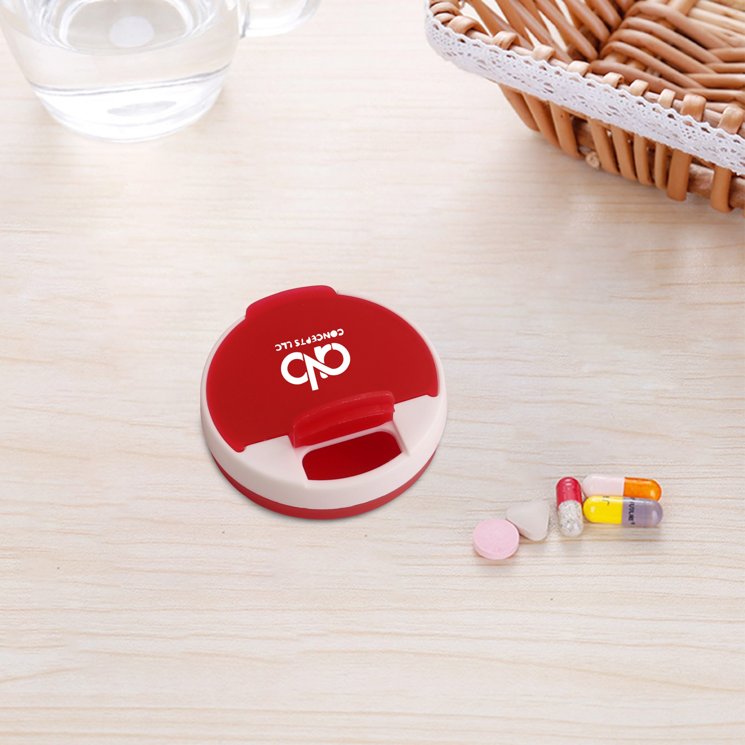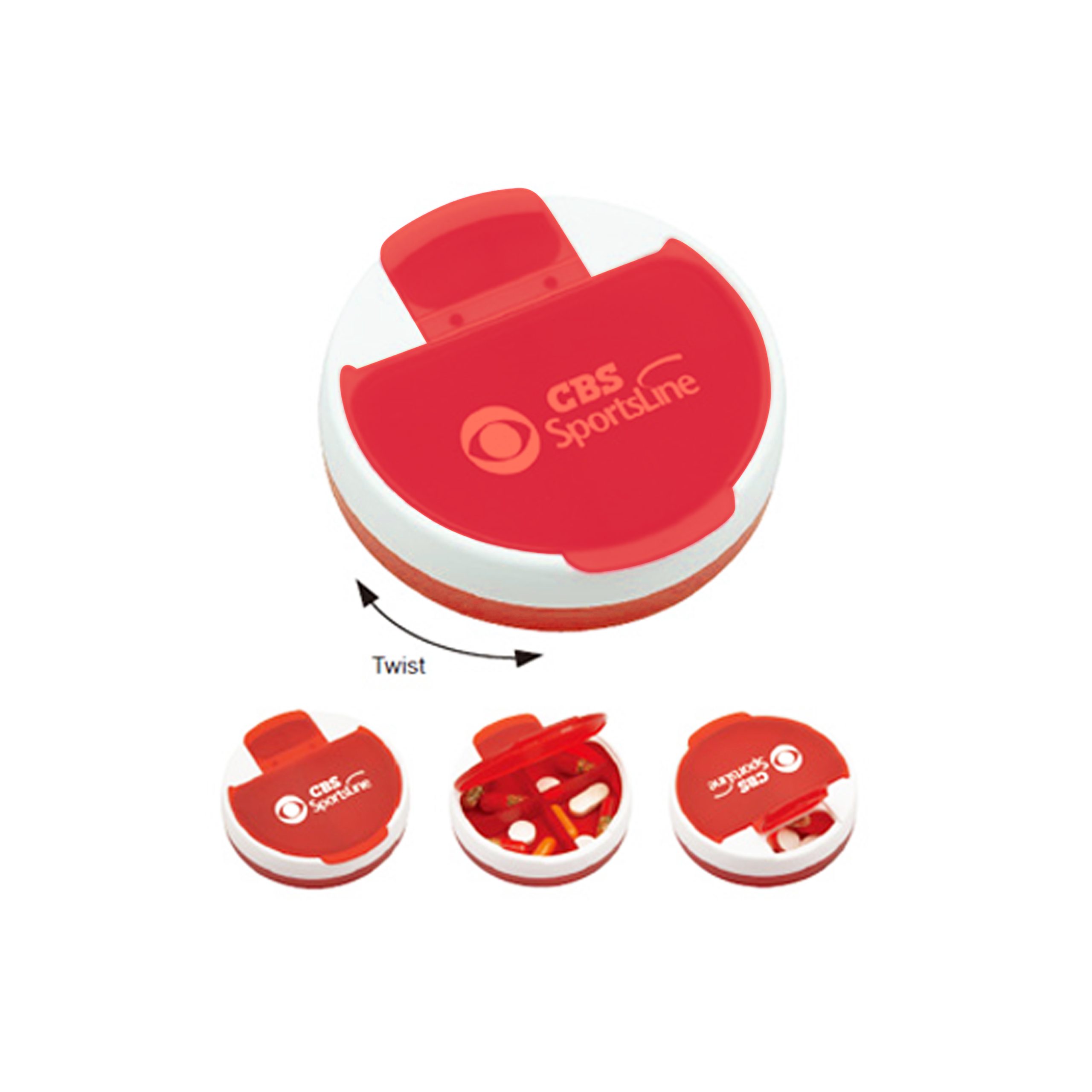 The Round Pill Box is a convenient way to organize and carry pills with you anywhere you go! To use this item, just take out the pill from the small compartment, and put onto the big side. Made from PP material, which is lightweight. Available in red, blue, green and orange.