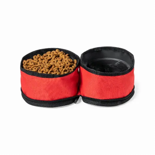 Compact and portable two-compartment bowl.