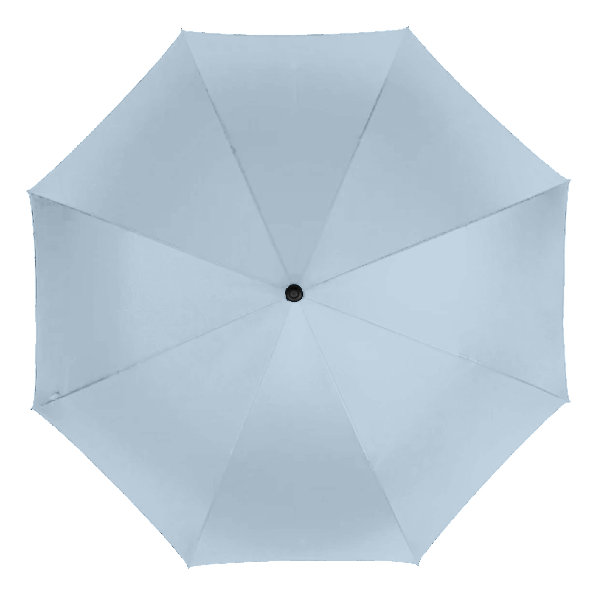 High quality automatic opening wind proof and showerproof golf umbrella eight-panel 190T pongee canopy with a velcro tie outside of canopy is coated in silver while inside of canopy is black strong fiber glass shaft with a metal tip black moulded soft-touch rubber handle and 75cm ribs.