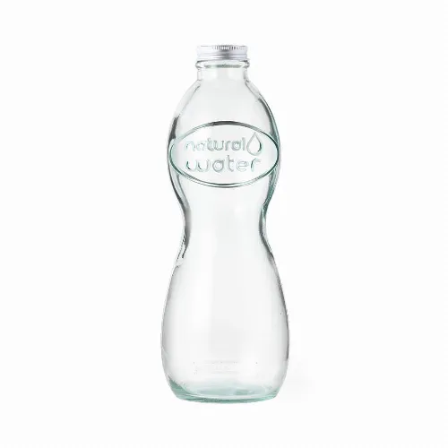 Made in Europe from recycled glass with GRS certification (Global Recycled Standard) confirming the recycled origin of the material used in the manufacture of the product. Bottle with metal screw-on lid and set presented in a recycled cardboard box with window.