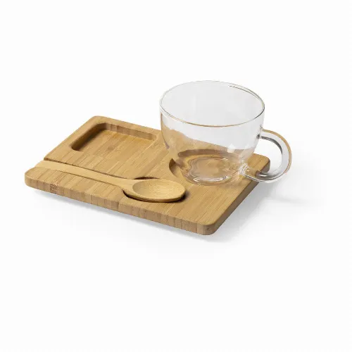 Including 180 ml mug made of borosilicate glass, offering an exceptional resistance and durability, extending its life span and being reused many times. Base and spoon in polished bamboo, presented in an attractive design box.
