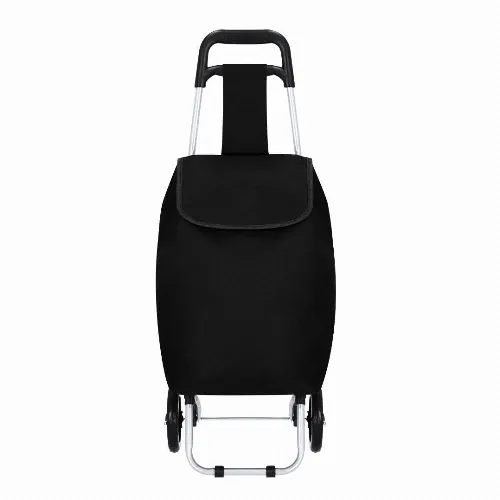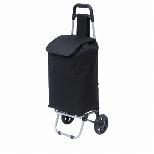 With reinforced handles, tubular metal body, rear zipper pocket and stand with rubber bands. High quality reinforced wheels.
