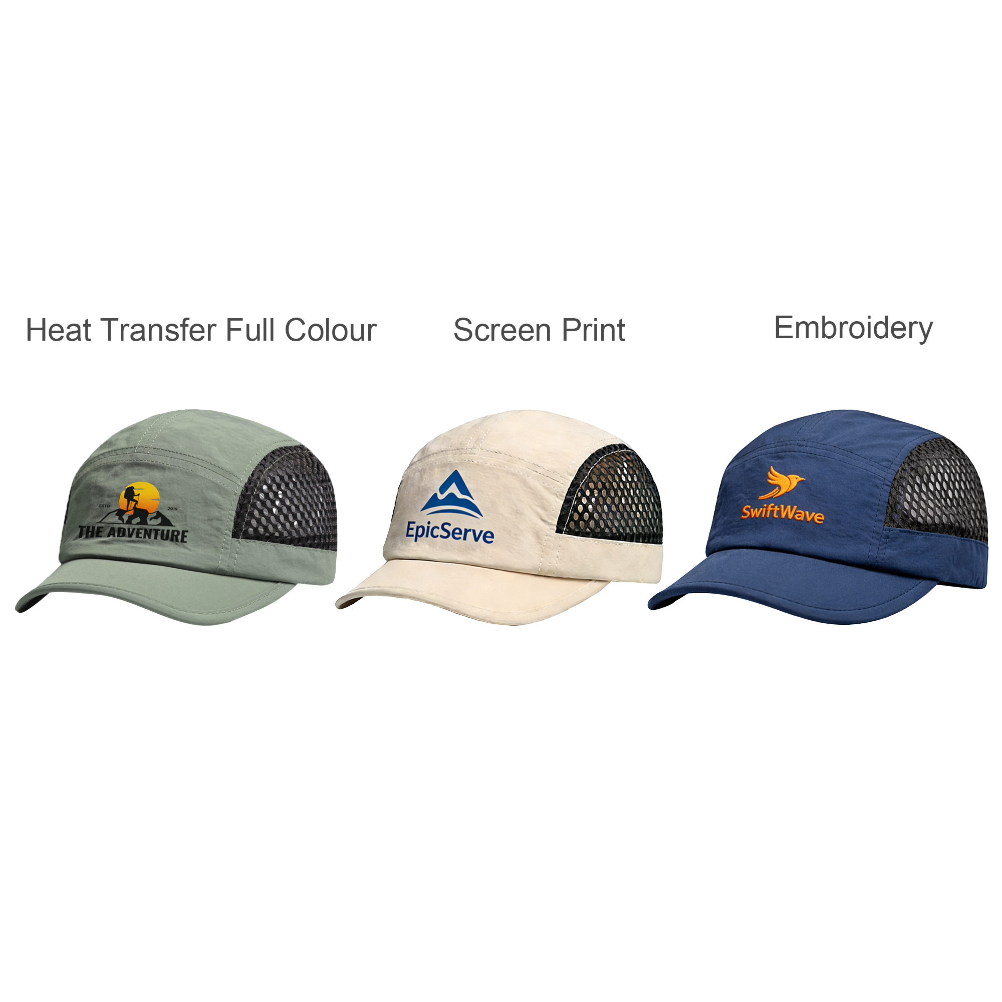 Stay cool and stylish with our Short Brimmed Mesh Running Cap! Made from breathable polyester, this lightweight cap features a 5-panel design for a perfect fit. With heat transfer, screen print, or embroidery to showcase your design, available in various stylish options to match your look. The mesh fabric keeps you cool and comfortable, while the short brim provides sun protection without blocking your view. Whether you’re running, hiking, or just out and about, this cap is your go-to accessory for comfort, breathability. Upgrade your sporty style today!