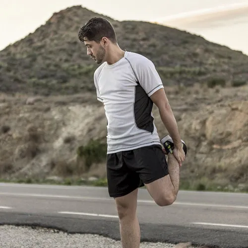 Sports trousers in resistant and lightweight 145g/m2 polyester, breathable fabric in bright tones.
