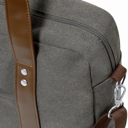 Timeless design shoulder bag and document holder, made of durable 475 g/m2 canvas in grey colour, with leatherette straps and functional, adjustable shoulder strap.