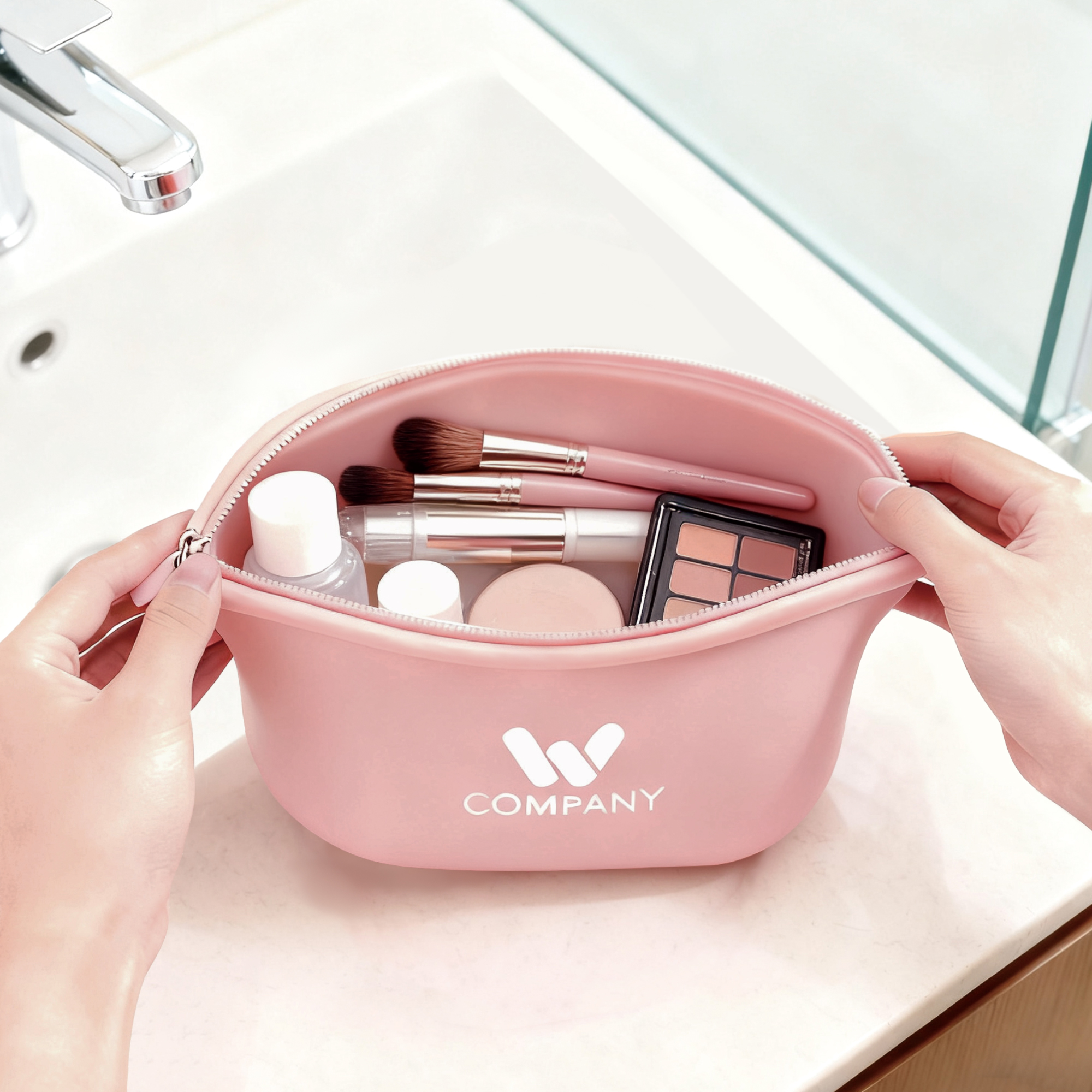 Meet your new beauty essential – the Silicone Cosmetic Bag! Crafted from durable silicone, this stylish bag wipes clean in seconds and maintains its fresh look. The flexible material comfortably holds all your makeup essentials while being easy to squeeze into tight spaces. Personalize it with custom screen printing to create your unique style statement. Your perfect travel companion for keeping makeup organized and protected wherever you go!