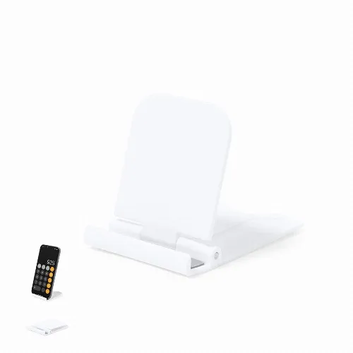 In stylish white finish, with height-adjustable charging base and smartphone holder function. Compatible with devices equipped with wireless charging technology. Type C charging cable included, with wide branding surface and presented in an attractive design box. Available instruction manual in English and Spanish. Compliant with safety requirements:Overheat protection system.Overcharge protection system.Blocking system to prevent short-circuits.